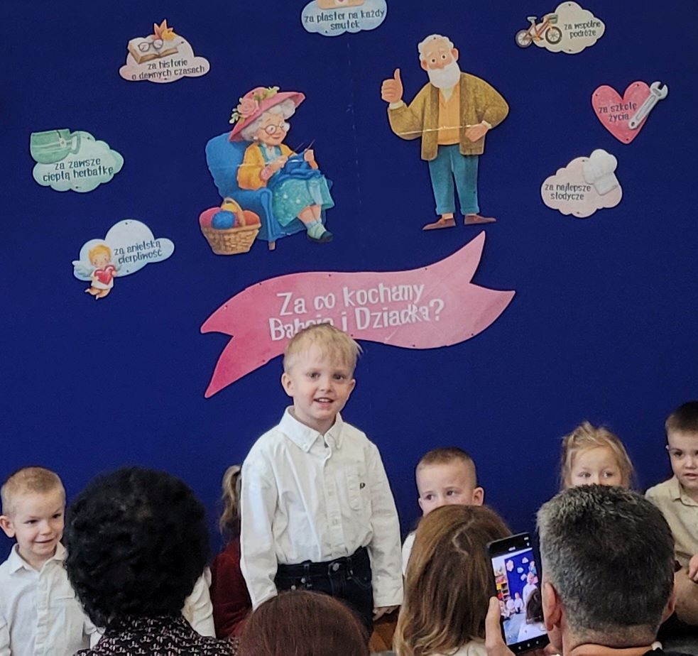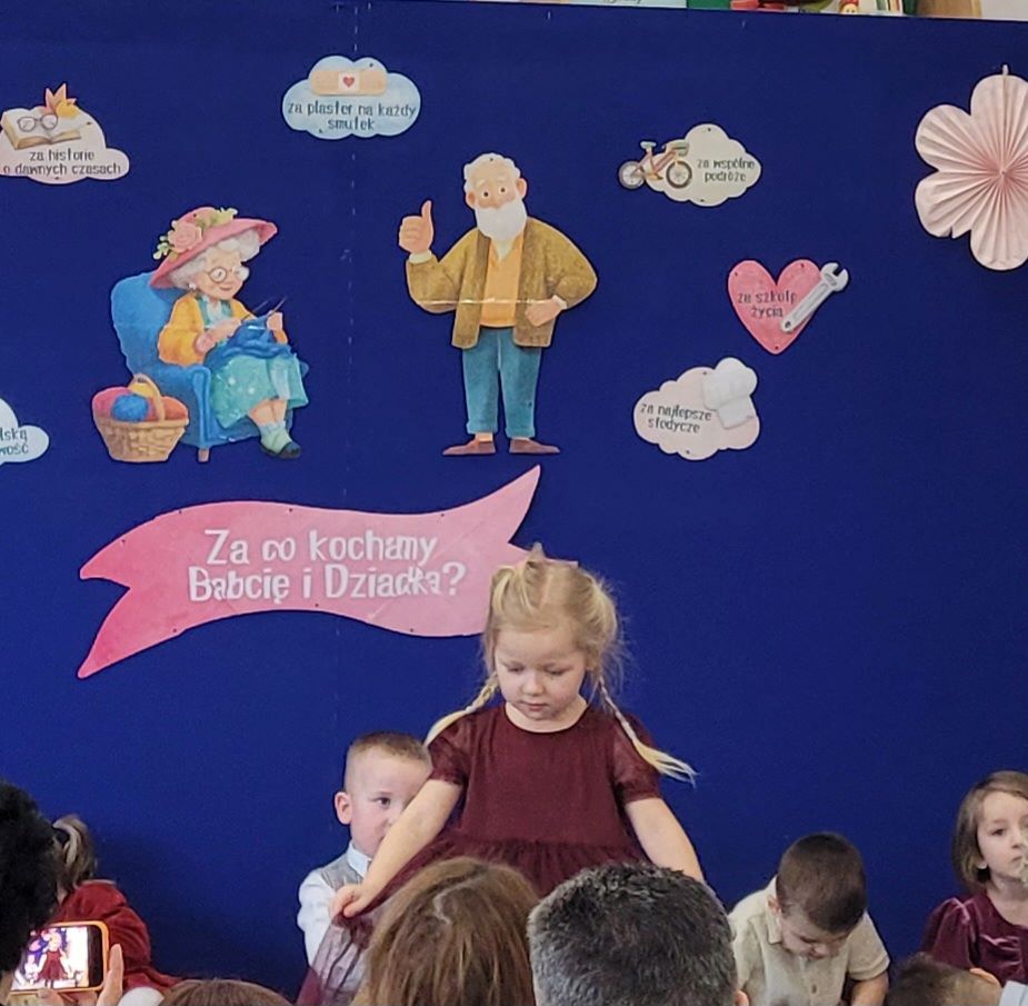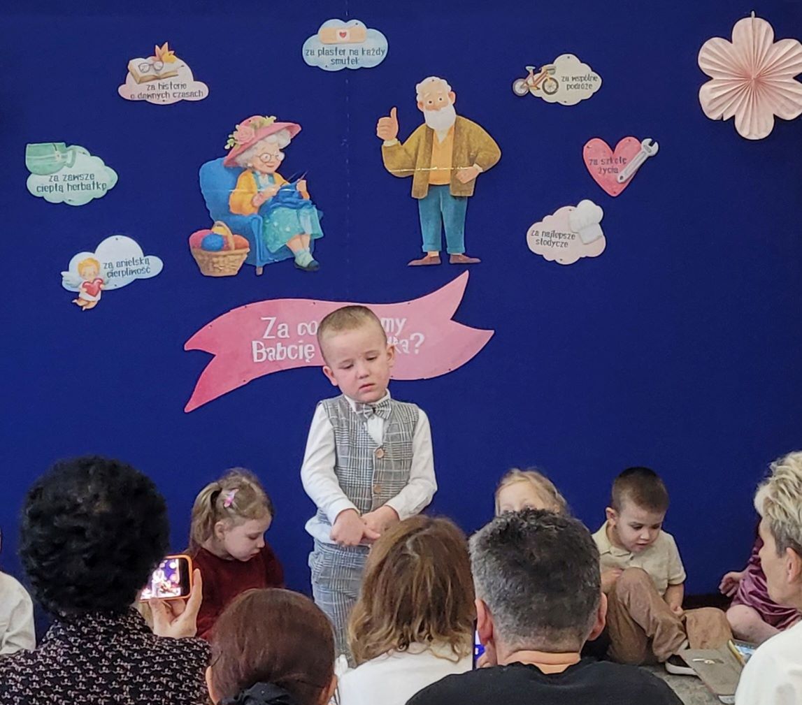 Babcię i dziadka kochamy każdego dnia. Lecz w dniu ich święta, ich kochane wnuczęta mogą w sposób szczególny wyrazić swoją wdzięczność za ich wsparcie i obecność, za ich bezwarunkową miłość i opiekę. Dzieci z grupy słoneczka pięknie zaśpiewały i wyrecytowały wierszyki swoim babciom i dziadkom, a także wręczyły im drobne upominki.