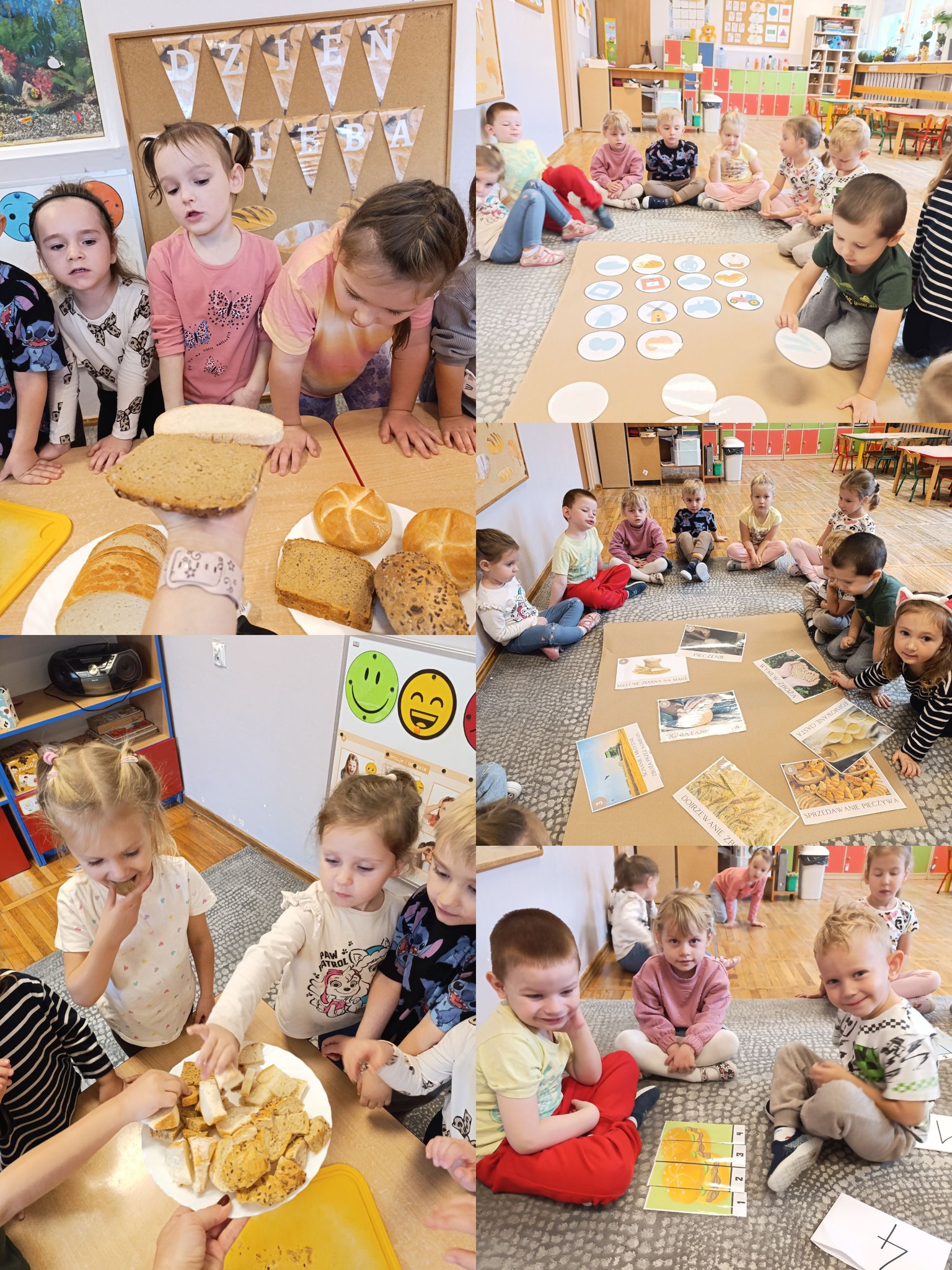 W Stokrotkach, Biedronkach, Słoneczkach, Misiach i Żabkach obchodzono dzień chleba. Była to okazja do edukacji o tym jak powstaje pieczywo. Dzieci uczestniczyły w zajęciach „Od ziarenka do bochenka”. Były zabawy edukacyjne, degustacja różnego rodzaju pieczywa i bułek oraz pieczenie chleba i zabawy z tablicą multimedialną. Dzięki taki zajęciom dzieci dowiedziały się o etapach produkcji chleba, poznały jego składniki i doceniły pracę osób zaangażowanych w jego produkcję.