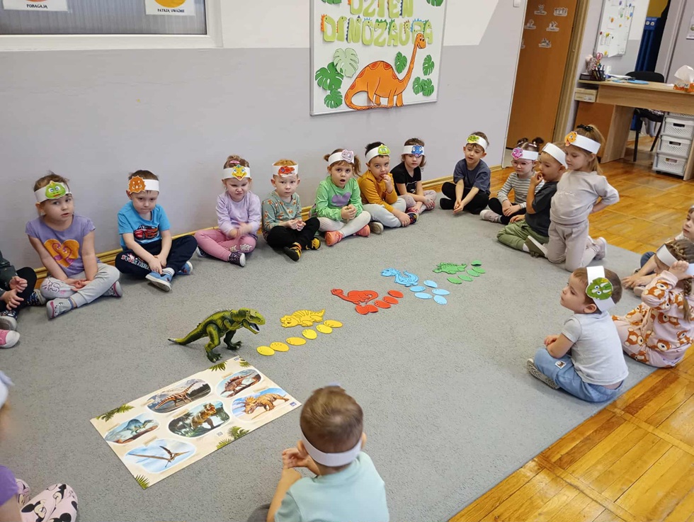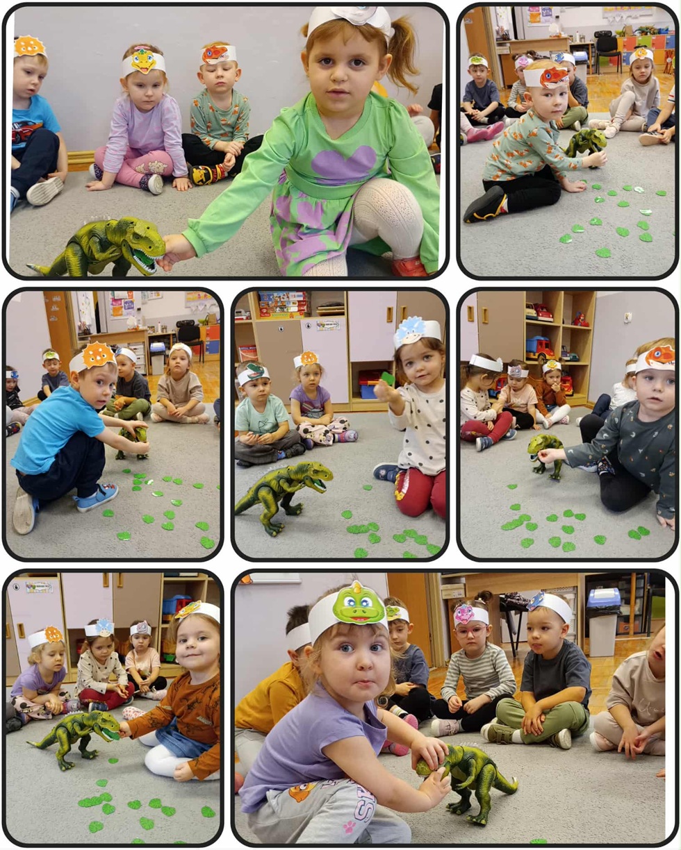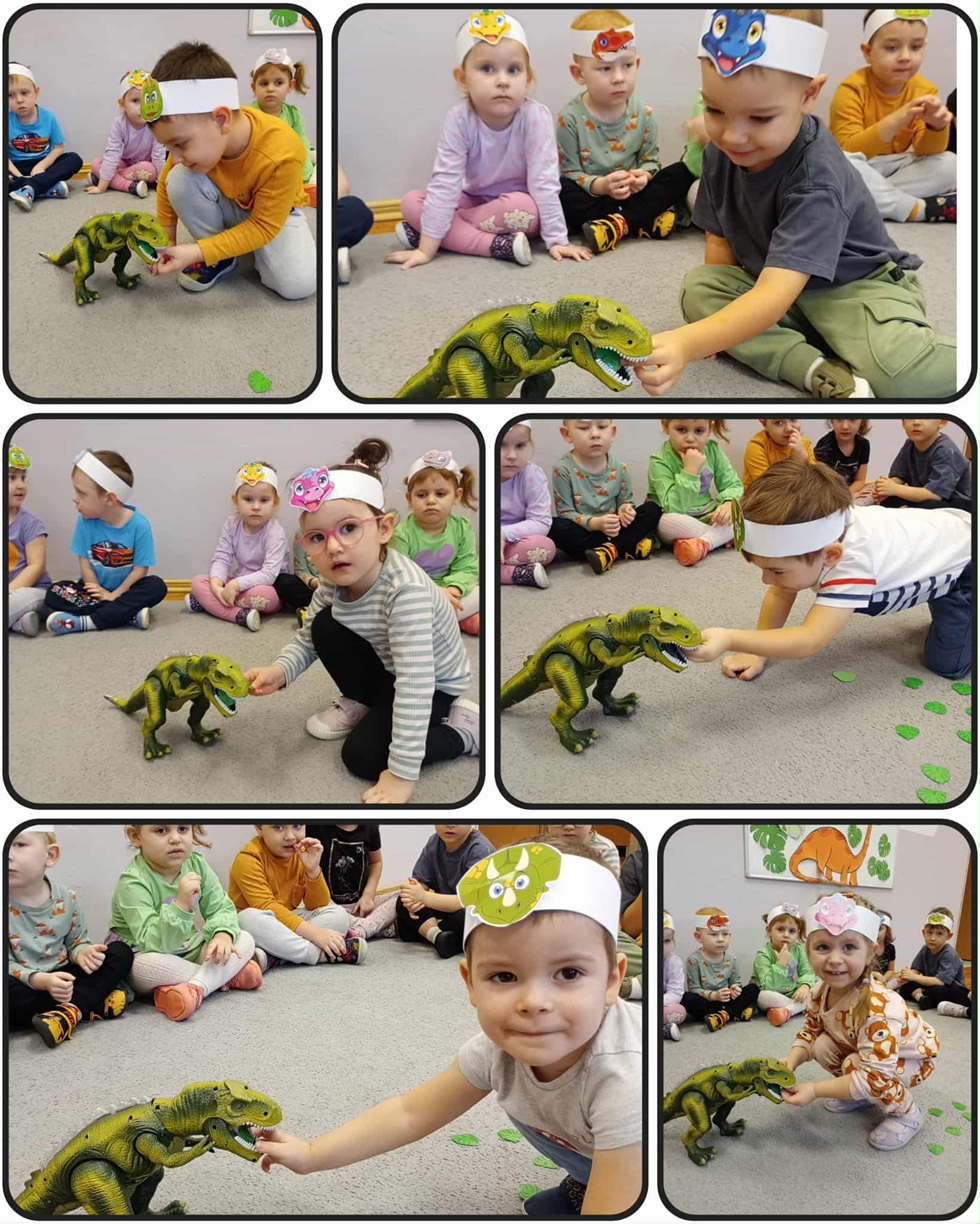 Z okazji Dnia Dinozaura „Biedronki” poznały ciekawostki dotyczące dinozaurów oraz wysłuchały opowiadania „Przygoda Diniego w Dolinie Parów”. Dzieci „karmiły” głodnego dinozaura, czy oglądały dinozaury wyświetlane przy wykorzystaniu projektora przyniesionego przez jedną z koleżanek. Ponadto przedszkolaki określały kolory jaj i segregowały je do odpowiednich prehistorycznych zwierząt. „Biedronki” wcieliły się również w rolę paleontologów poszukując zakopanych skamielin. Przedszkolaki wykonały również papierowe dinozaury, a przyniesione zabawki stały się głównymi bohaterami ich zabaw.