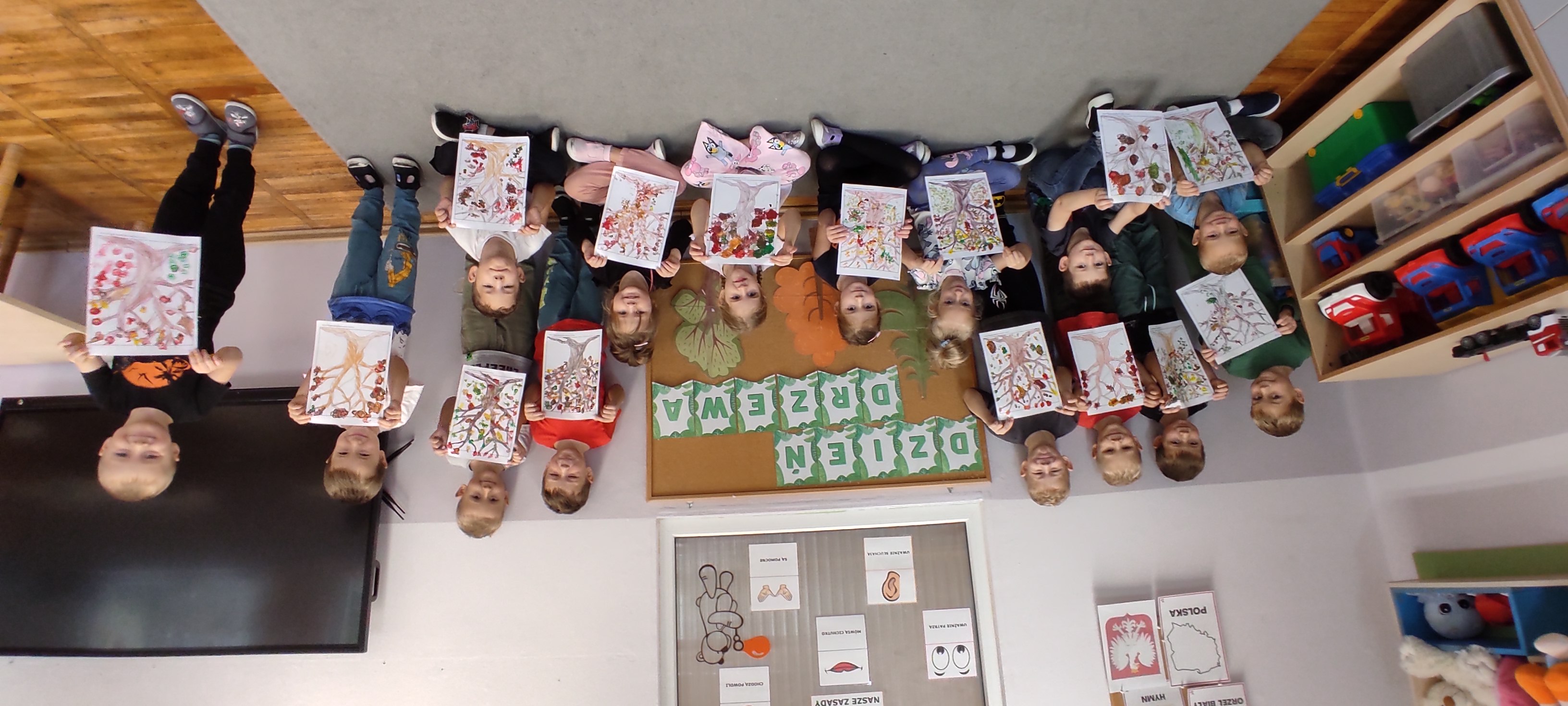 W dniu 9 października dzieci z grupy Misie świętowały Dzień Drzewa. W tym dniu przedszkolaki dowiedziały się, dlaczego dbanie o drzewa jest tak ważne nie tylko dla ludzi, ale i dla zwierząt. Poznały poszczególne części drzewa, a nawet sami na chwilę zamienili się w szumiące na wietrze drzewa. Dzieci układały odpowiednią liczbę liści na poszczególnym drzewie, dopasowywały liście i owoce do poszczególnej ilustracji, a na koniec wykonały piękne jesienne drzewa przy użyciu patyczków kosmetycznych.