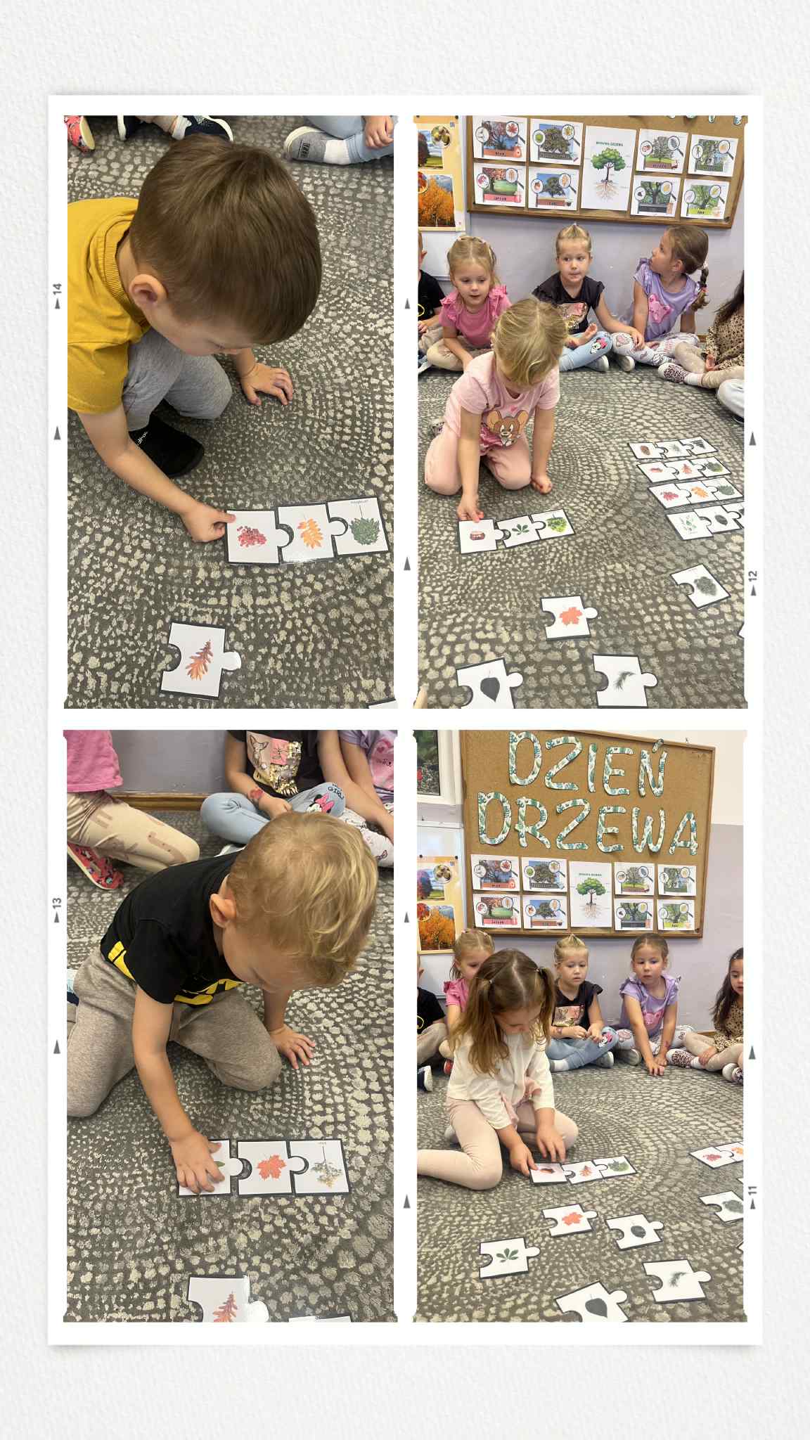 9 października w grupie „Stokrotki” obchodzony był „Dzień Drzewa”. Dzieci w tym dniu dowiedziały się jak ważną rolę pełnią drzewa dla planety i Nas samych, poznały jego budowę oraz dowiedziały się co możemy z nich otrzymać. Przedszkolaki wzięły udział w zabawie ruchowej, dopasowywały do siebie puzzle przedstawiające drzewa, liście i owoce, a także odszukiwały pasujące cienie do liści. Na koniec 4-latki wykonały pracę plastyczną.