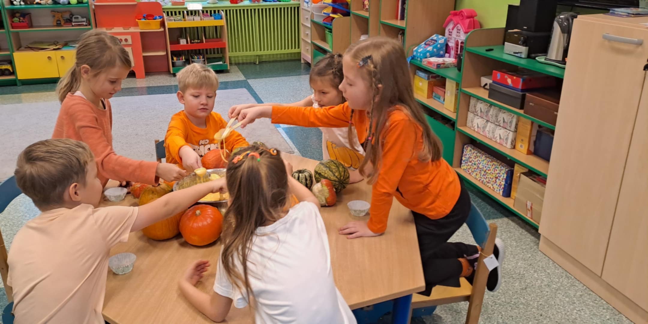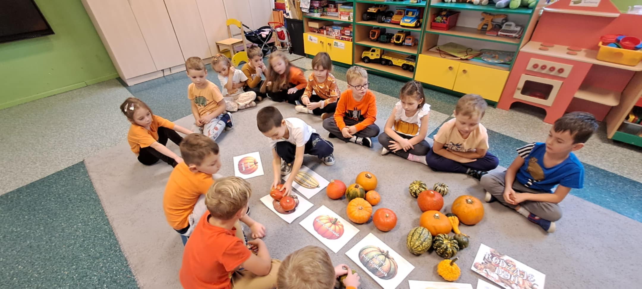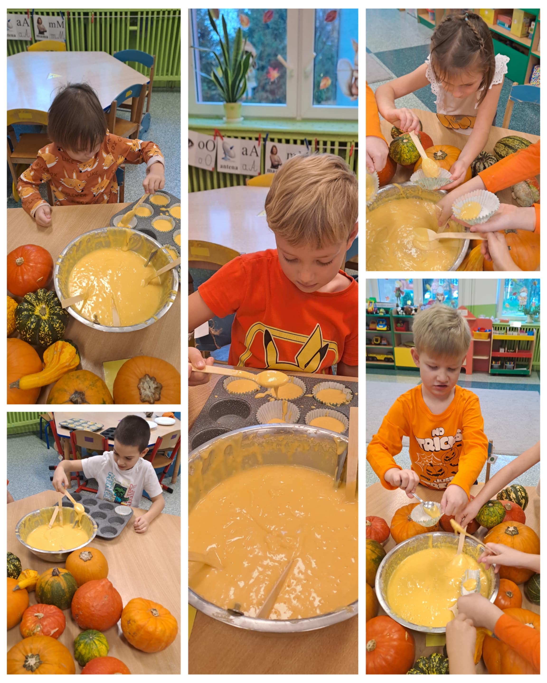 Grupa Motylki obchodziła Dzień Dyni. Dzieci poznawały różne gatunki dyń, porównywały ich kształty i kolory, a także uczestniczyły w zabawach edukacyjnych. Nie zabrakło również wspólnego pieczenia — mali kucharze przygotowywali pyszne dyniowe babeczki, które później z apetytem degustowali. Na zakończenie każdy Motylek wykonał swoją własną dyniową pracę plastyczną. To był pełen radości, kolorów i smaków dzień.
