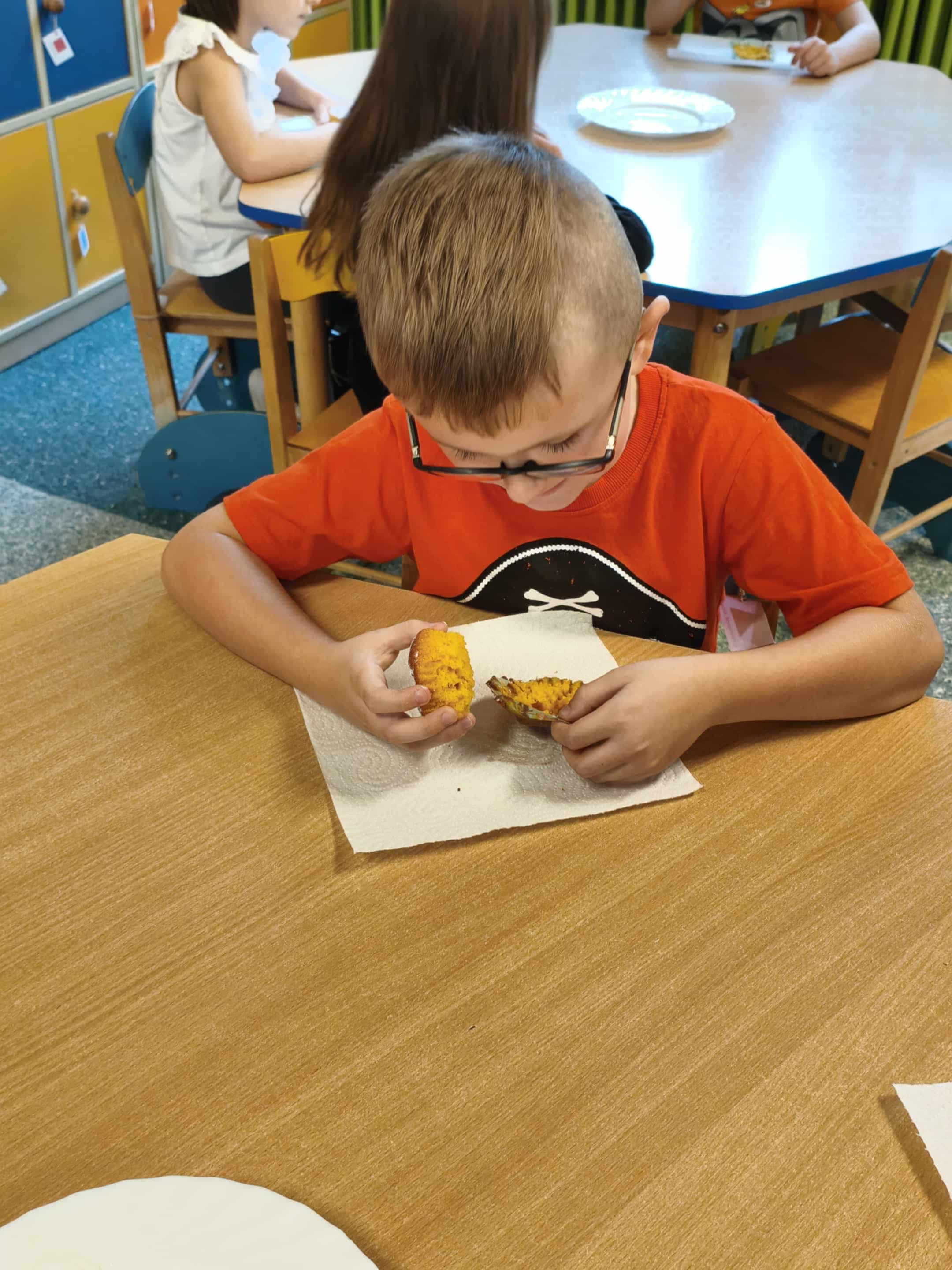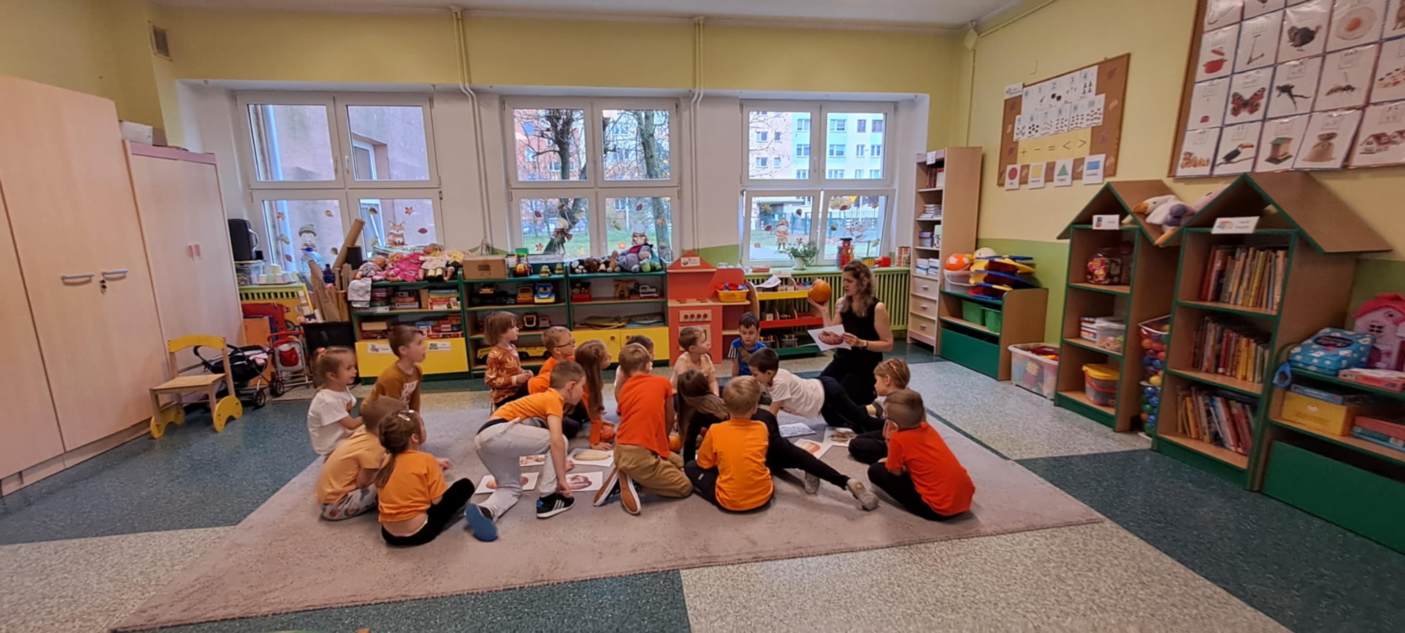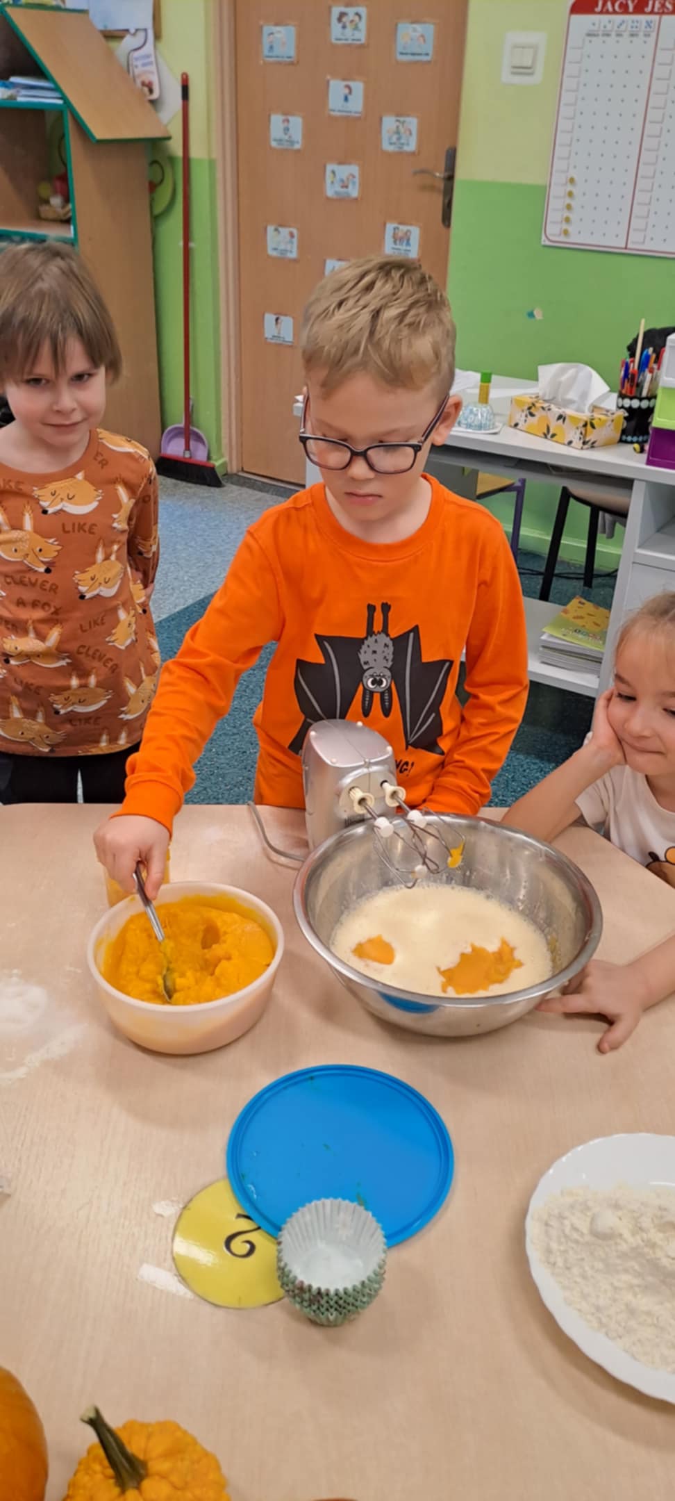 Grupa Motylki obchodziła Dzień Dyni. Dzieci poznawały różne gatunki dyń, porównywały ich kształty i kolory, a także uczestniczyły w zabawach edukacyjnych. Nie zabrakło również wspólnego pieczenia — mali kucharze przygotowywali pyszne dyniowe babeczki, które później z apetytem degustowali. Na zakończenie każdy Motylek wykonał swoją własną dyniową pracę plastyczną. To był pełen radości, kolorów i smaków dzień.