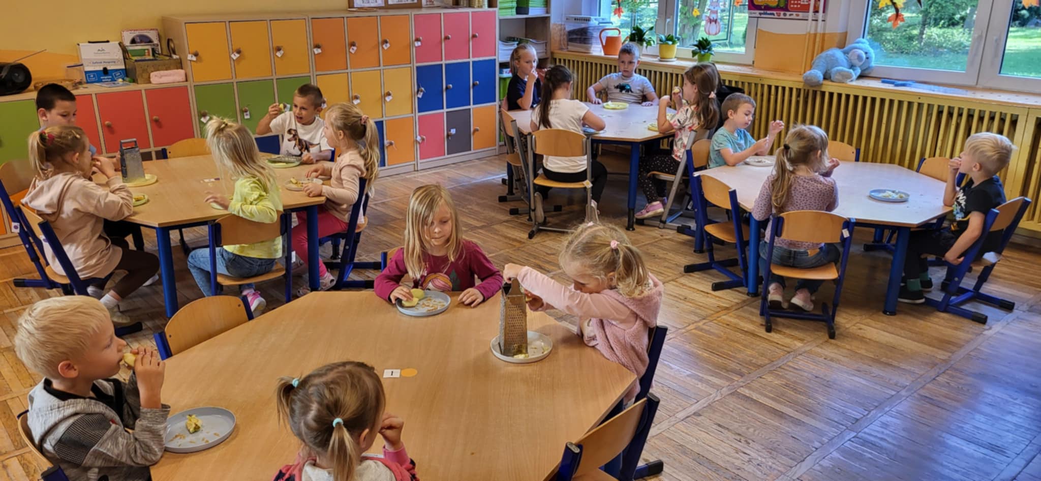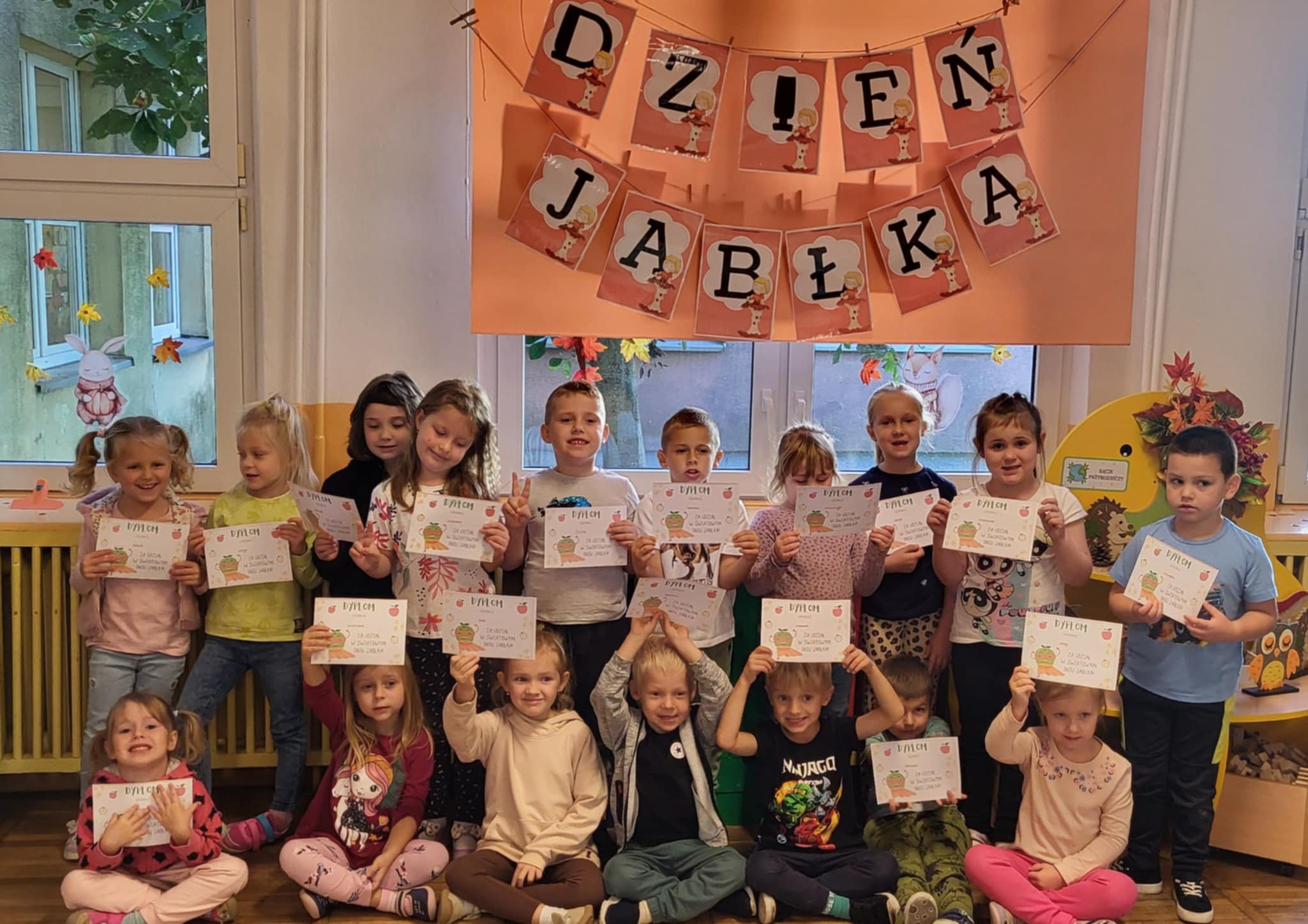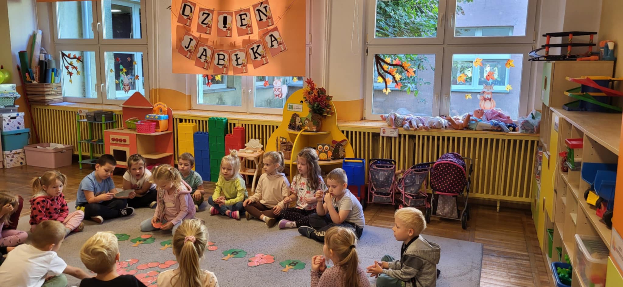 26 września dzieci z grupy Żabki obchodziły ,,Dzień Jabłka”, podczas którego miały okazję odkrywać ten pyszny owoc na różne sposoby. Poznawały kształt jabłka, jego zapach oraz smak, co dostarczyło im wiele radości i ciekawych wrażeń. Po zajęciach przyszedł czas na kreatywność! Dzieci wykonywały prace plastyczno – techniczną związaną z jabłkami.