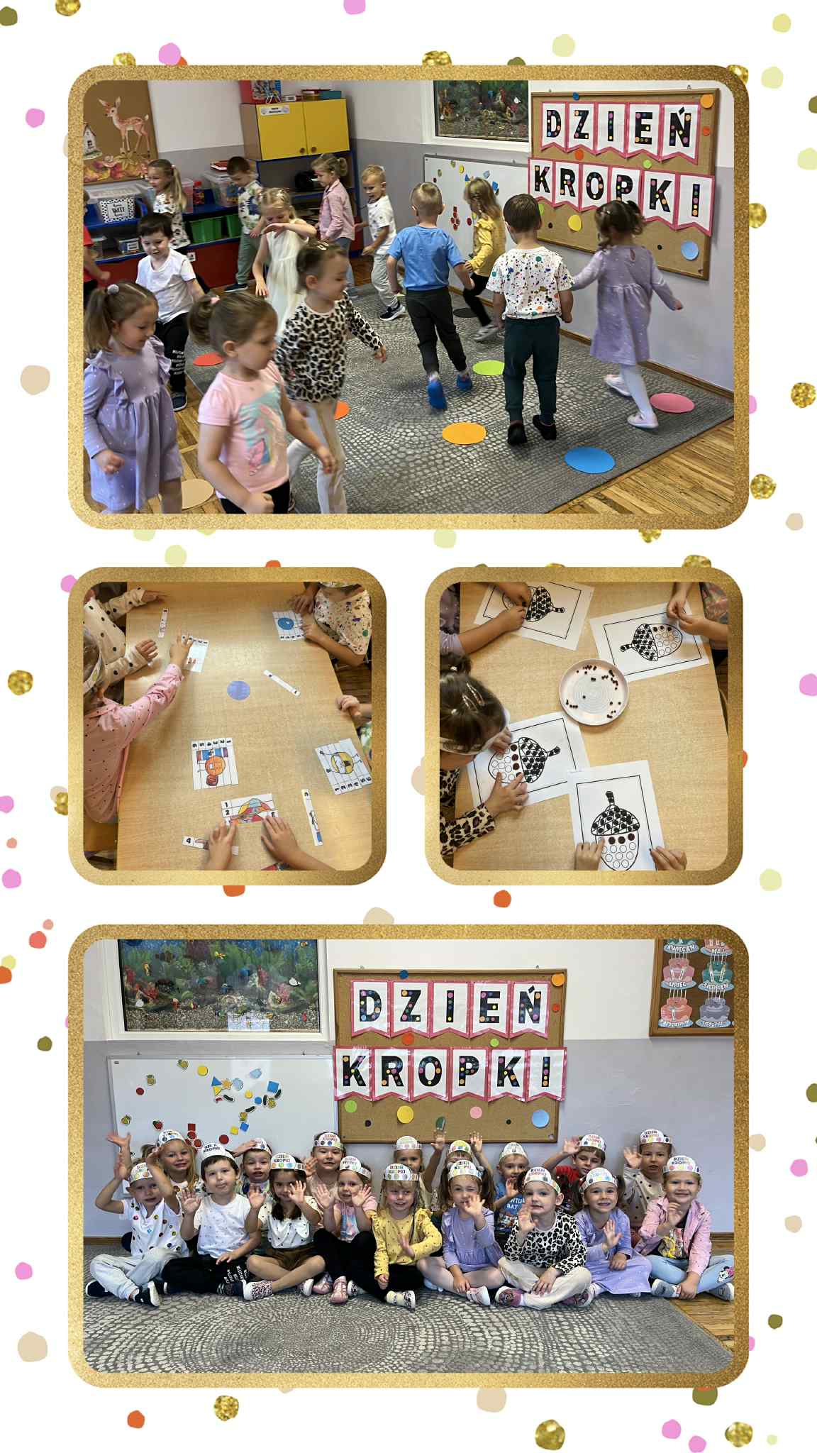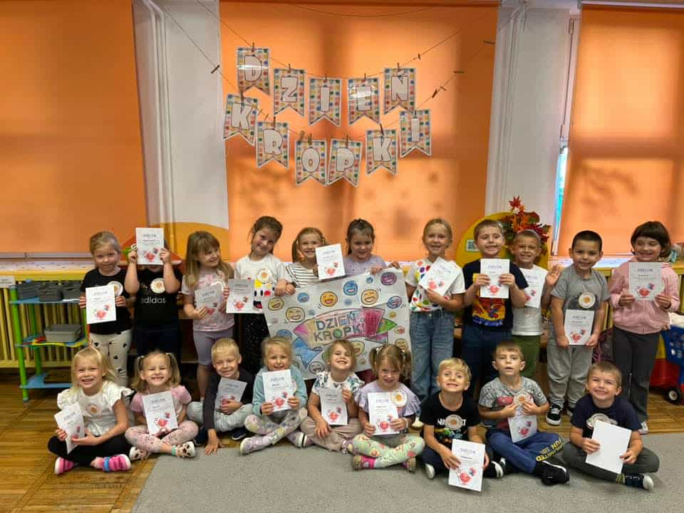 15 września obchodzony jest Międzynarodowy Dzień Kropki. W naszym przedszkolu dzieci także wzięły udział w obchodzeniu tego święta kreatywności i wiary we własne możliwości. Wszystkie podjęte w tym dniu działania zachęcały dzieci do podejmowania wyzwań oraz odkrywania swoich talentów. Dzieci malowały prace plastyczne z wykorzystaniem kropek, zakładały w tym dniu ubrania w kropki, sami tworzyli stroje w kropki oraz uczestniczyli w zabawach z kropkami.