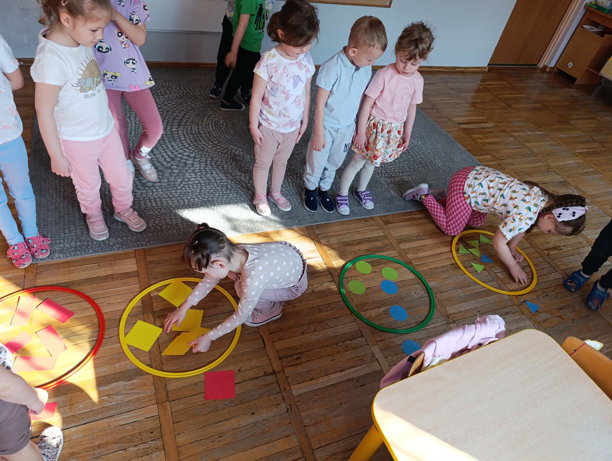 Dzieci z grupy Stokrotki przekonały się po raz kolejny, że matematyka może być ciekawa i daje dużo radości. Przedszkolaki brały udział w aktywnościach związanych z rozwijaniem orientacji przestrzennej, liczeniem oraz rozpoznawaniem figur geometrycznych.