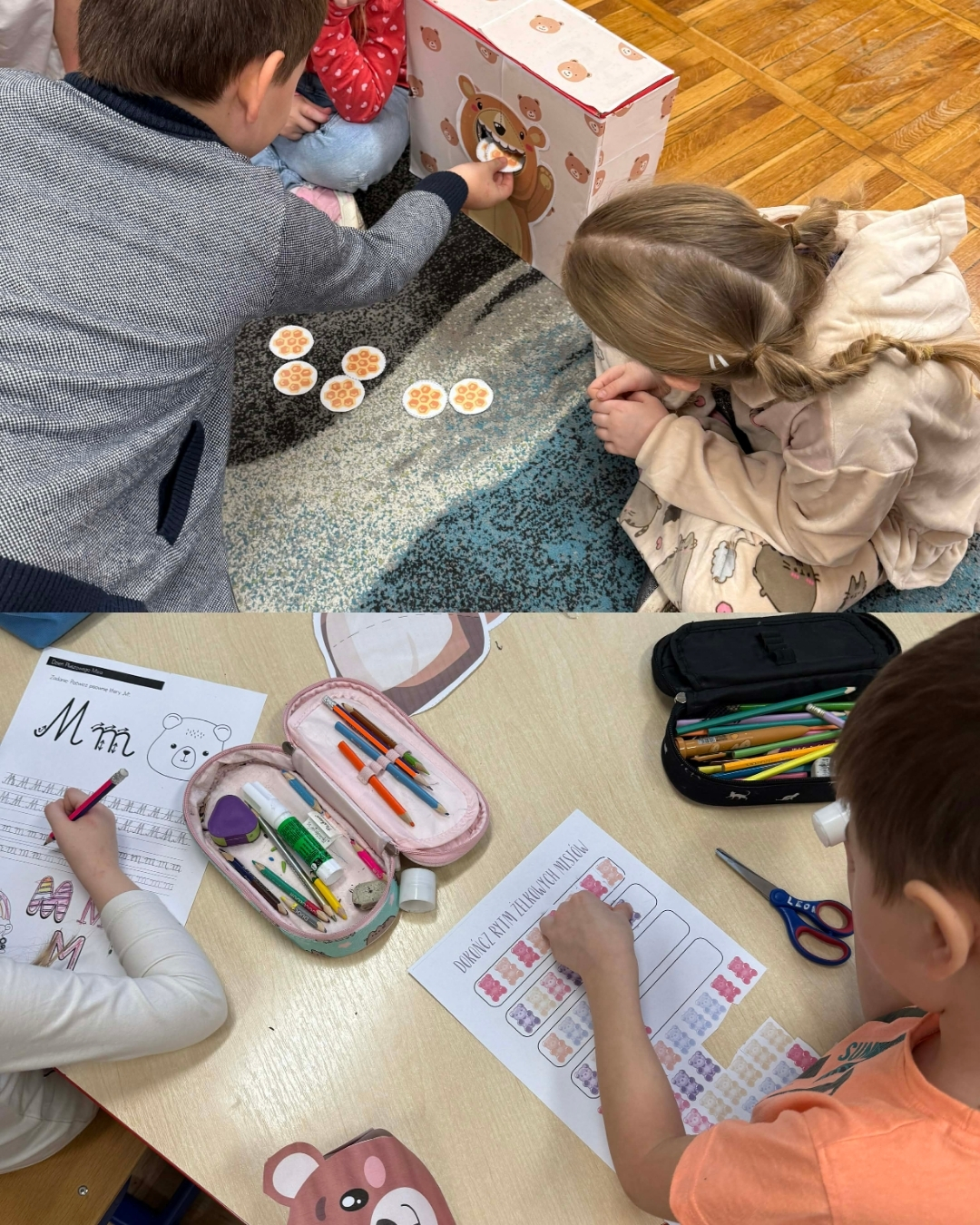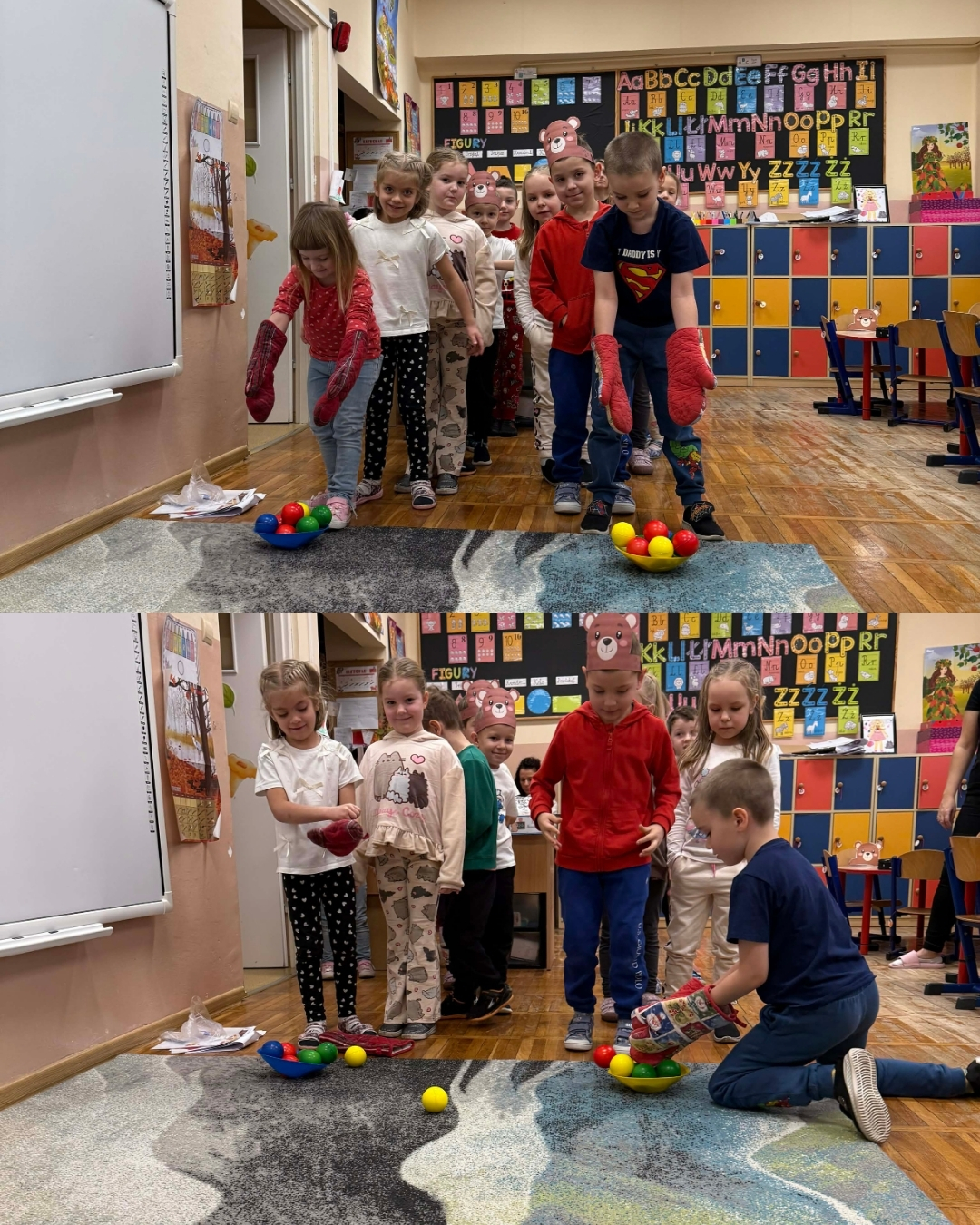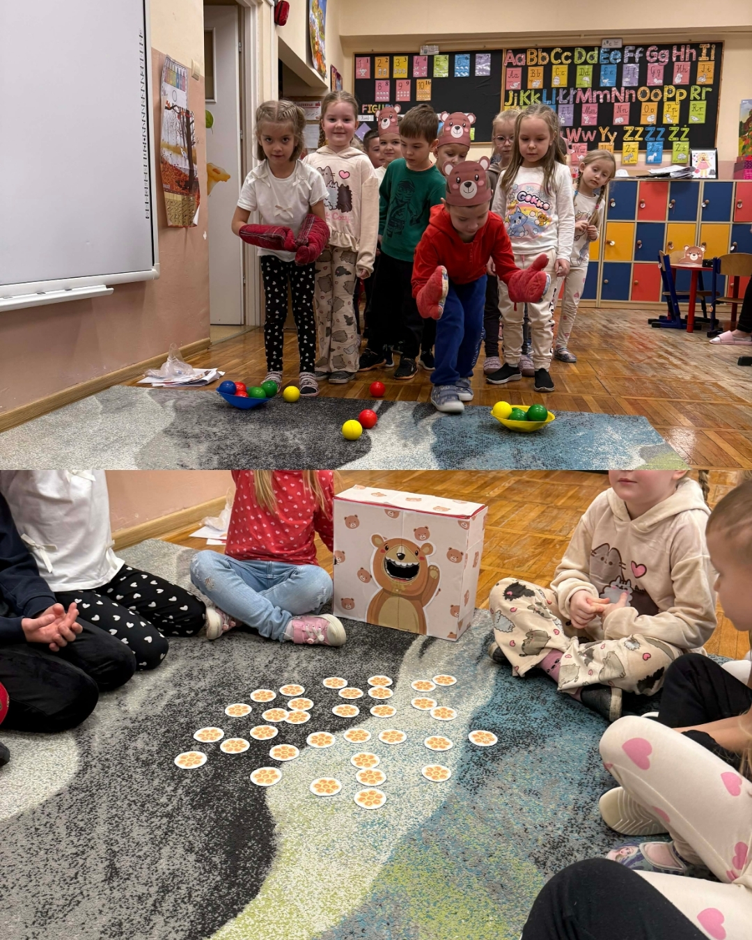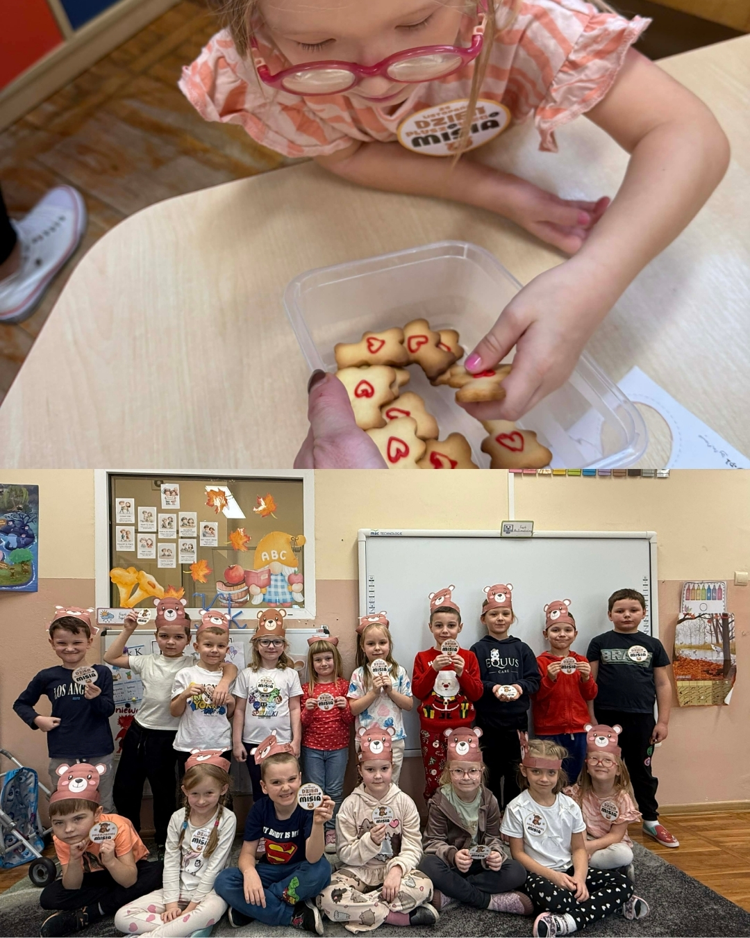 Dzień Pluszowego Misia był spędzony w bardzo przyjemnej atmosferze. Dzieci wspólnie ustaliły, że mały pluszowy miś jest super przyjacielem, powiernikiem tajemnic, pocieszycielem, towarzyszem zabaw, miłym prezentem. Smerfy poznały historię pluszowego misia, wykonały sobie tematyczne opaski. Miś przygotował zawdy sportowe, ćwiczenia logiczne, matematyczne, origami. Dzieci zrobiły także prace plastyczne i karty pracy. W nagrodę wszystkie dostały pamiątkowe odznaki oraz czekała na nie słodka niespodzianka - misiowe ciasteczka i misiowe żelki.