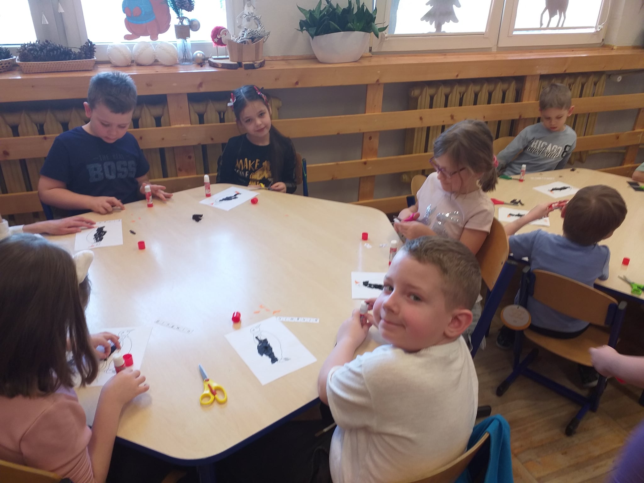 Światowy Dzień Wiedzy o Pingwinach obchodzony jest corocznie 20 stycznia. Celem tego święta, jak sama nazwa wskazuje, jest popularyzowanie wiedzy o pingwinach. To bardzo miłe ptaki, charakteryzujące się nieporadnym stylem poruszania się. Fascynują wielu ornitologów, jak i ludzi interesujących się przyrodą. Ten dzień obchodziły także dzieci z grupy Odkrywcy. Na początku oglądały na ilustracjach różne gatunki pingwinów, różniące się od siebie cechami charakterystycznymi. Poznawały ich nazwy nadane im ze względu na charakterystyczny wygląd. Na zakończenie zajęć wyklejały kontur pingwina sztuką wydzieranki, oraz podpisały pracę układając wyraz „pingwin” z podanych liter.