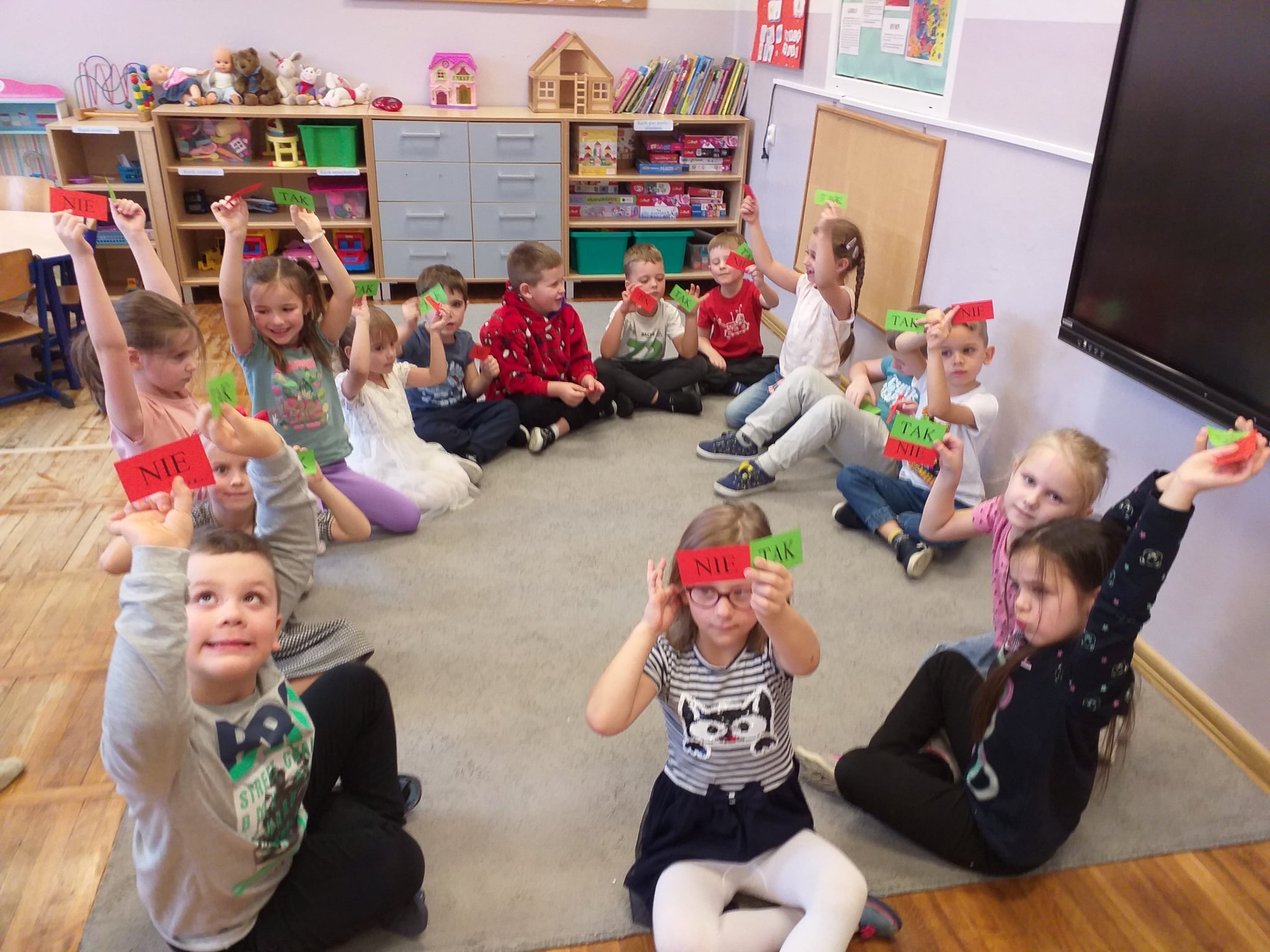 Europejski Dzień Zdrowego Jedzenia i Gotowania to święto obchodzone corocznie w listopadzie. Zostało zainicjowane w 2007 roku z uwagi na problemy nadwagi i otyłości coraz bardziej szerzące się w Europie. Jednym z jego celów jest promowanie zdrowych nawyków żywieniowych, promowanie regularnego spożywania posiłków oraz informowanie o konsekwencjach złej diety. Dzień ten był obchodzony także przez dzieci z grupy Odkrywcy. Na początku dzieci obejrzały dwa filmy edukacyjne na temat zdrowego odżywiania. Następnie poznawały piramidę zdrowego żywienia. Wspólnie tworzyły własną piramidę zdrowego żywienia. Segregowały produkty zdrowe i niezdrowe. Układały małe obrazki z puzzli. Bawiły się w zabawy ruchowe z emblematami owoców i warzyw. Brały udział w quizie o zdrowym odżywianiu. Mając do dyspozycji zielone i czerwone kartoniki bawiły się w zabawę „Prawda/ fałsz”, decydując czy zdanie jest prawdziwe czy fałszywe.