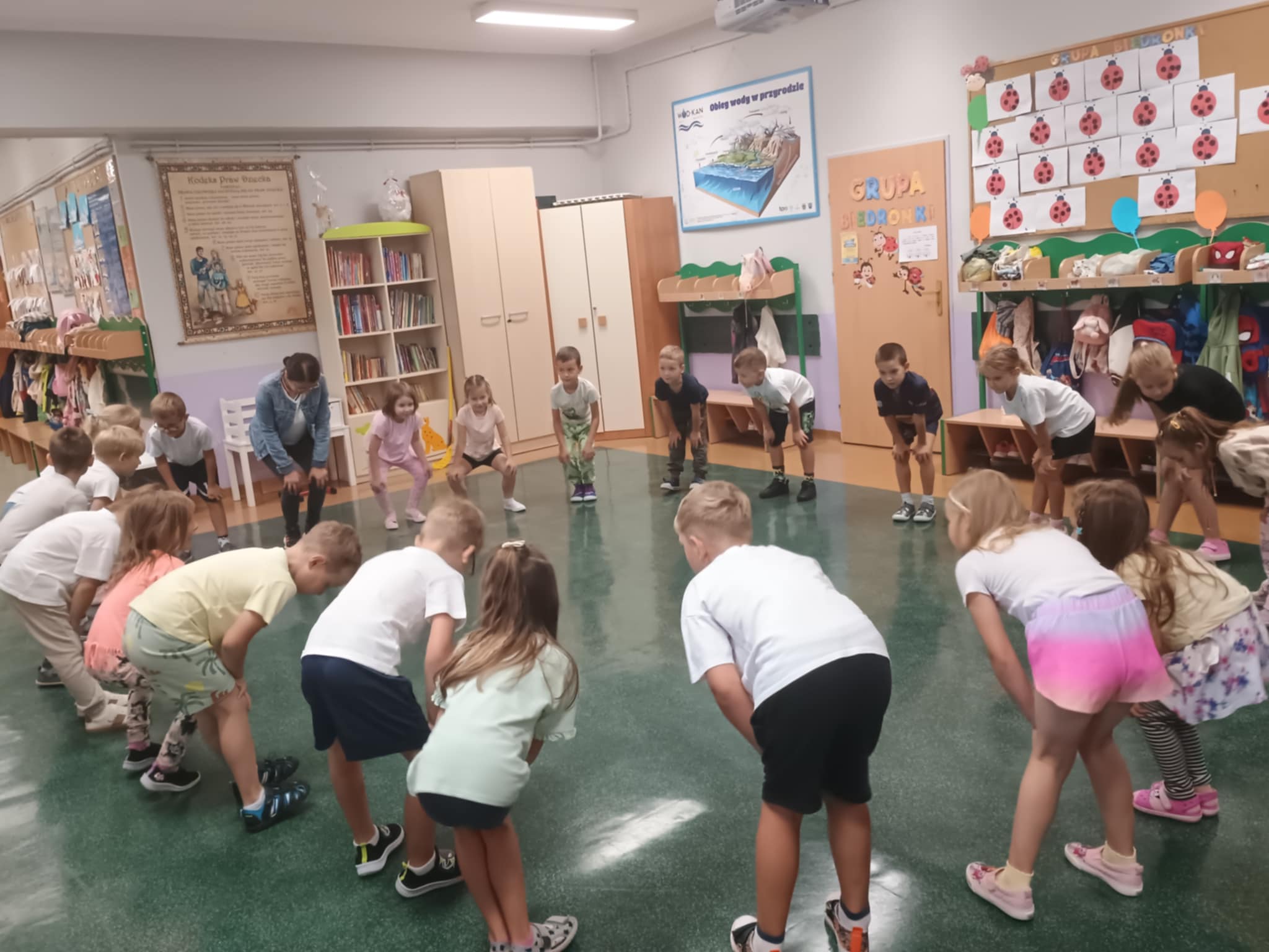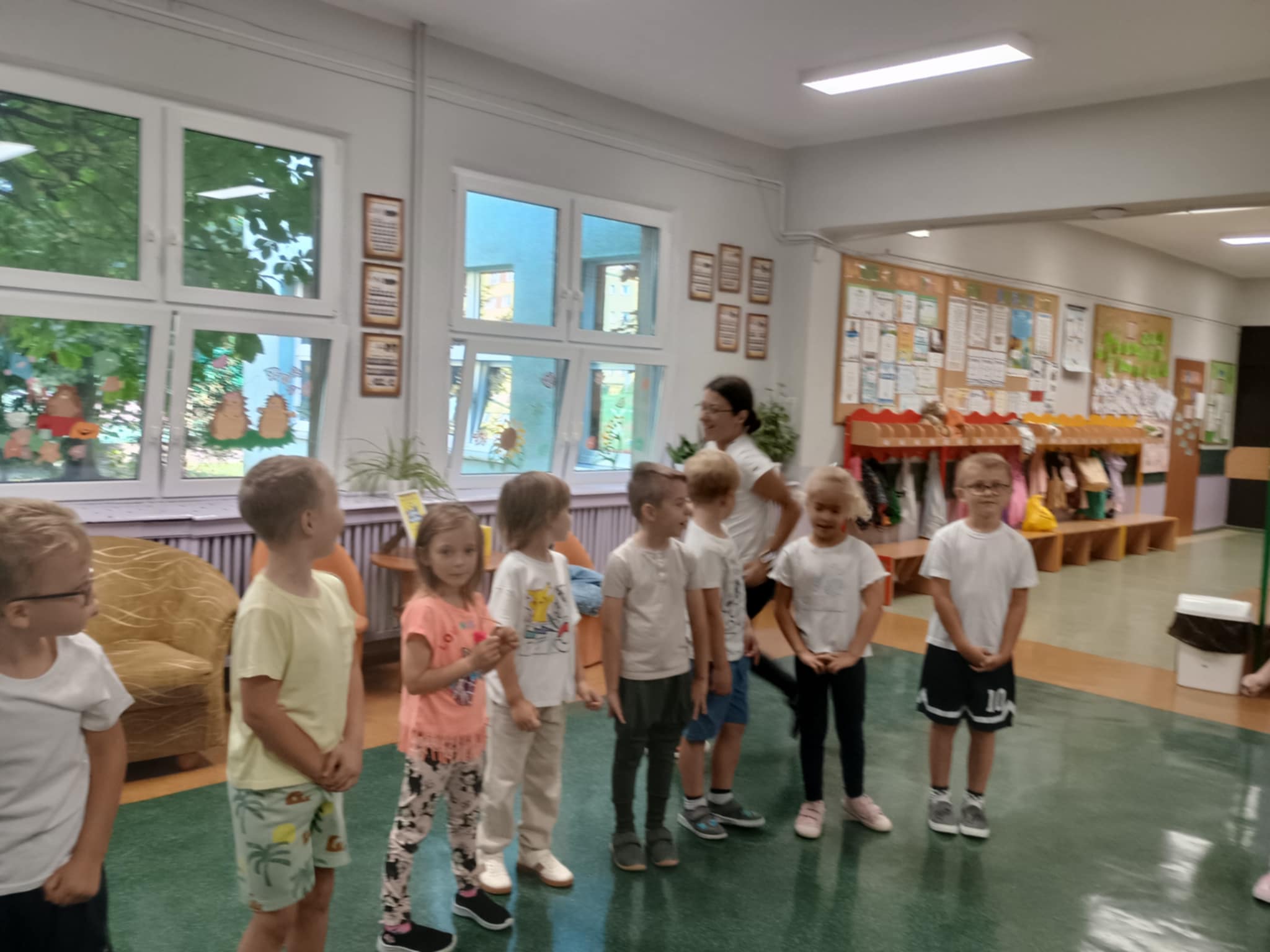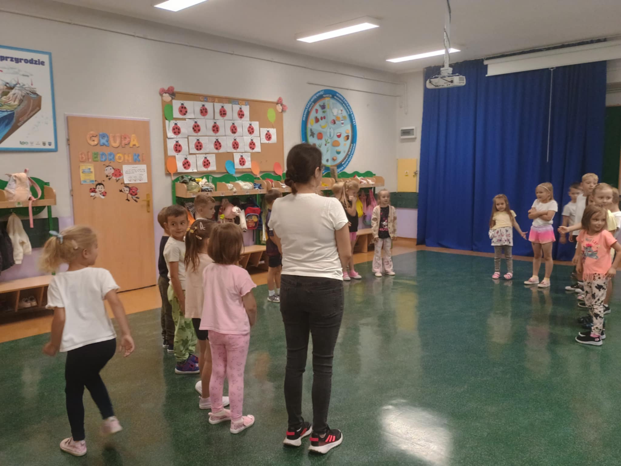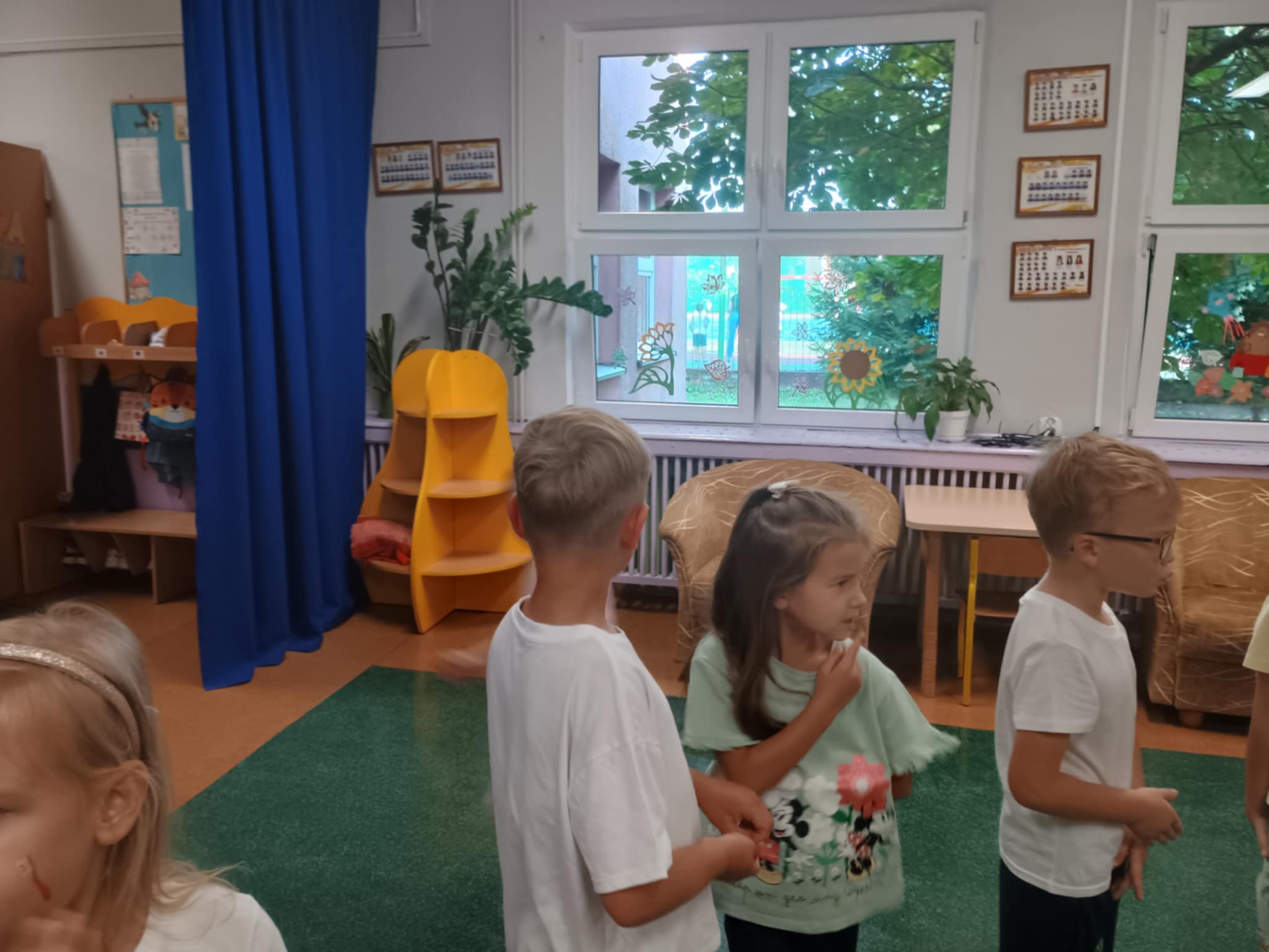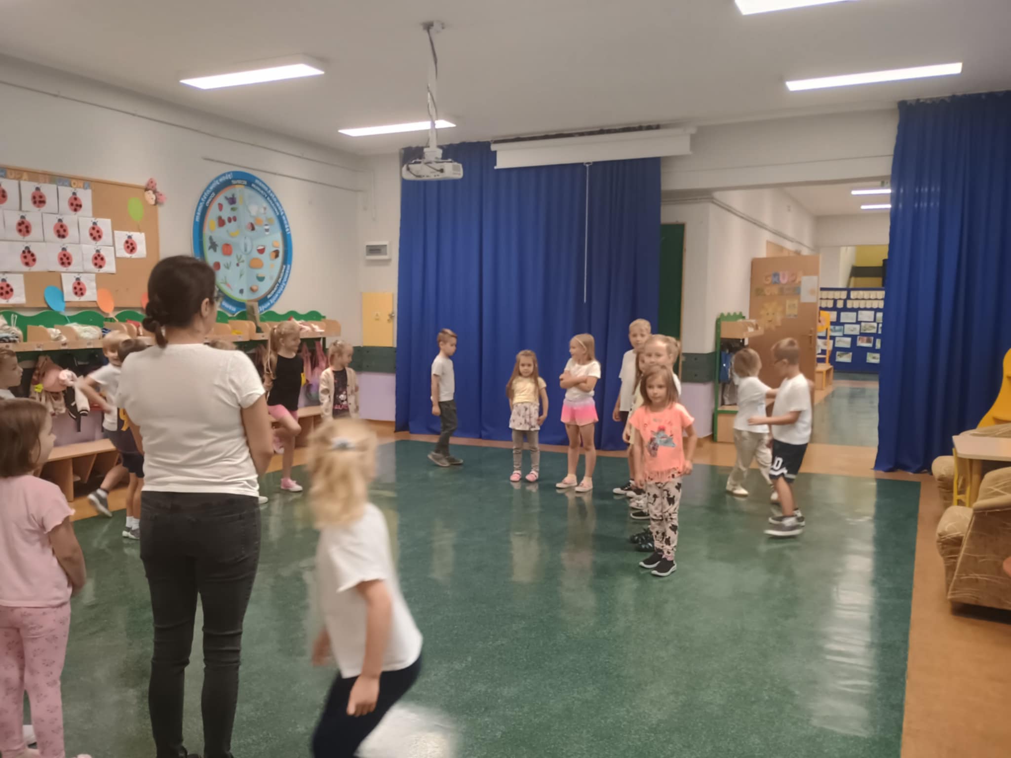 Pierwsza gimnastyka już za nami. Motylki z wielkim uśmiechem i zaangażowaniem wzięły udział w zajęciach ruchowych. Było dużo śmiechu, biegania, trochę rozciągania i podskakiwania. W wielkiej tajemnicy zdradzimy, że nasze Panie również z nami ćwiczyły - ale jak im to wychodziło - o tym nie powiemy. Takie poranki to czysta energia. Już nie możemy doczekać się kolejnych ćwiczeń.
