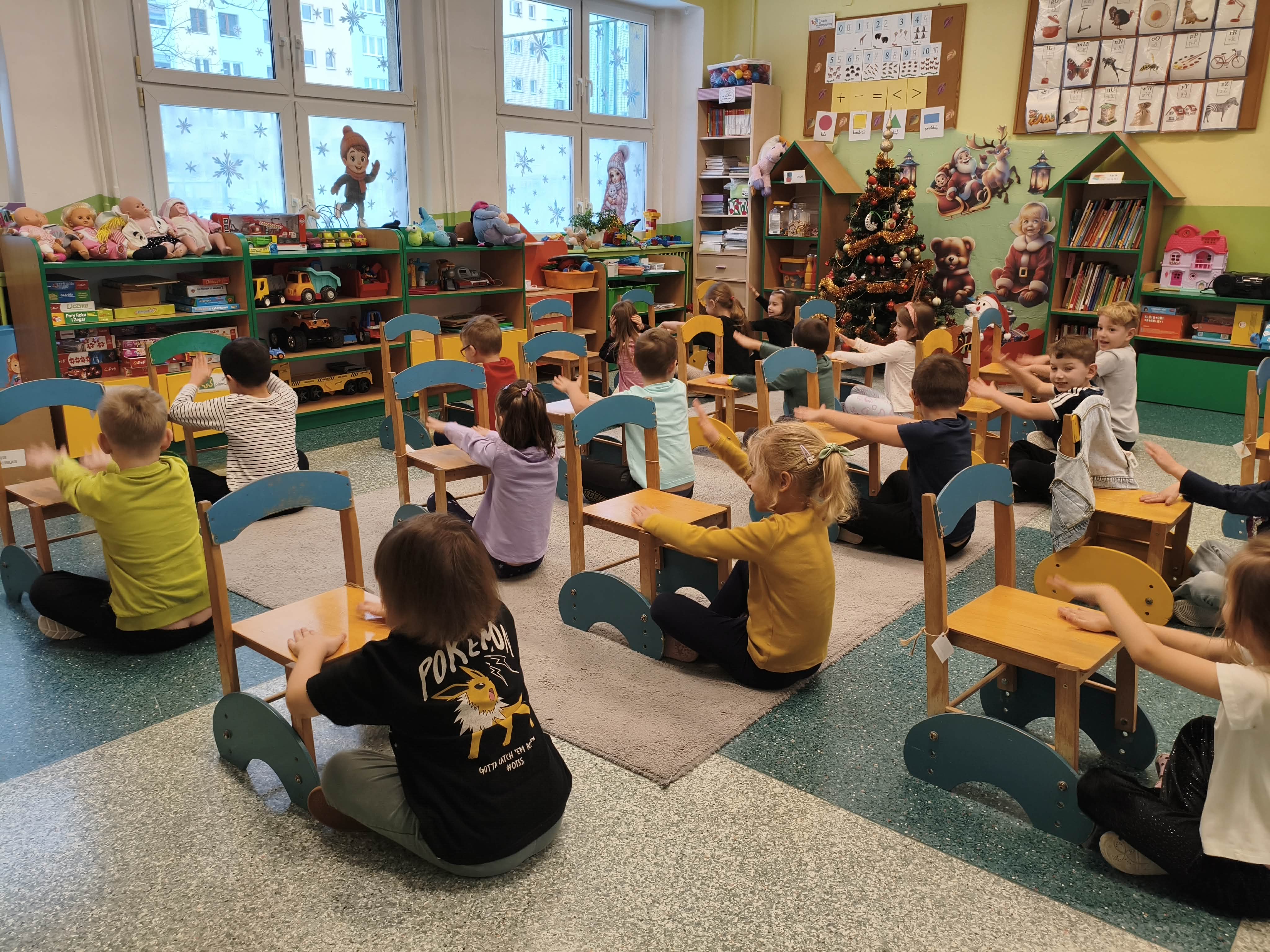 Dziś w grupie Motylki dzieci po raz kolejny udowodniły, że matematyka może być świetną zabawą! W ramach innowacji matematycznej wykorzystały… krzesła, aby doskonalić umiejętność określania kierunków w przestrzeni. Przedszkolaki z ogromnym zaangażowaniem odnajdywały przestrzeń nad, pod, obok, przed, za, po prawej i po lewej stronie wykorzystując do tego własne krzesełka. Nauka przez działanie i ruch to coś, co uwielbiają — a efekty widać od razu.