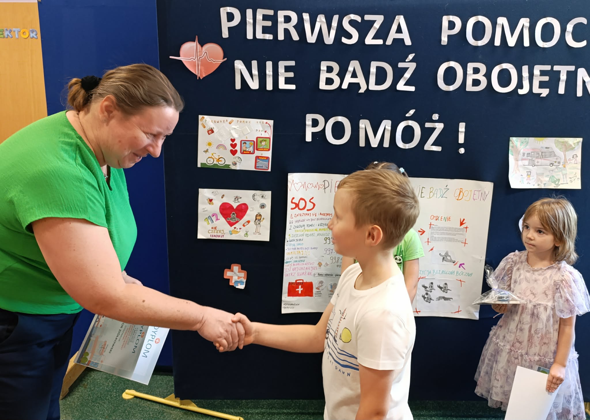 Celem konkursu była popularyzacja wiedzy na temat ratownictwa, wzmacnianie świadomości odpowiedzialnego podejścia do bezpieczeństwa oraz rozwijanie kreatywności i twórczości. Konkurs przeznaczony był dla dzieci 3 – 6 letnich. Warunkiem konkursu było wykonanie pracy plastycznej przedstawiającej udzielanie pierwszej pomocy. Wszyscy uczestnicy konkursu otrzymali dyplomy oraz drobne upominki.