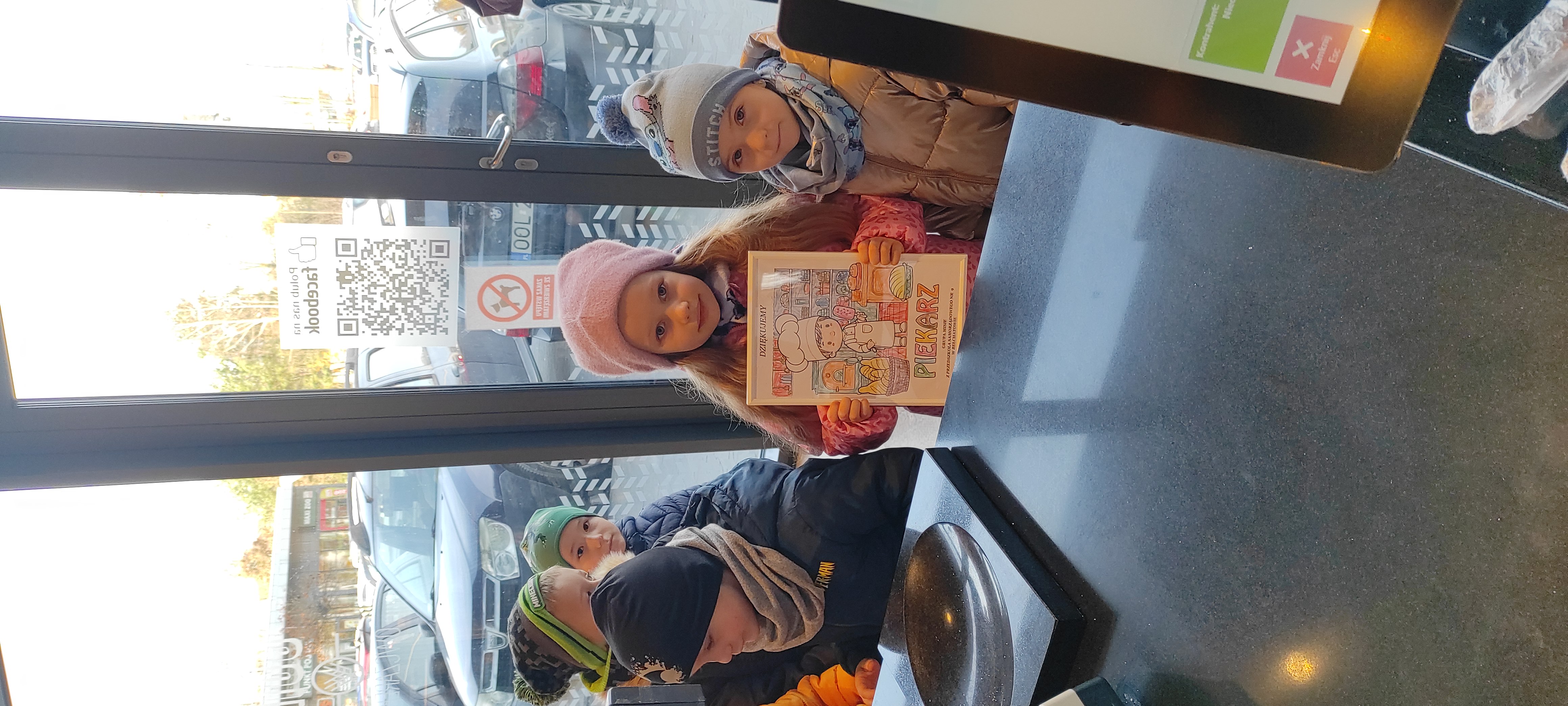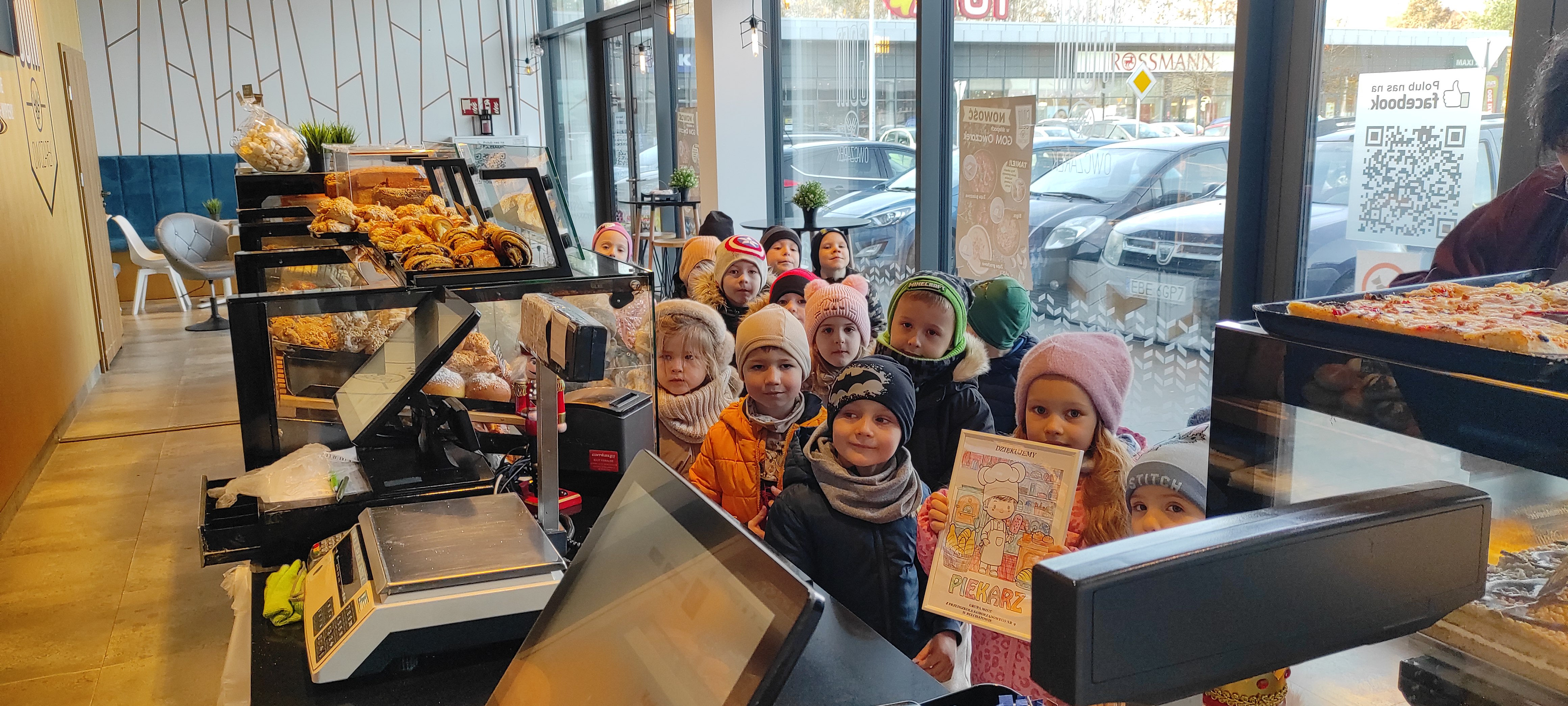W dniu 13 listopada dzieci z grupy Misie wraz z wychowawczyniami wybrały się do pobliskiej piekarni- cukierni, aby lepiej poznać zawód piekarza- cukiernika. Dzieci miały okazję same wybrać sobie ulubione ciasteczka, zapłacić za nie, a na koniec skonsumować je. W podziękowaniu za miłe przyjęcie dzieci wręczyły Paniom sprzedającym w sklepie własnoręcznie pokolorowany rysunek. Po powrocie do przedszkola wszystkie dzieci jednogłośnie stwierdziły, że było to naprawdę udane wyjście.