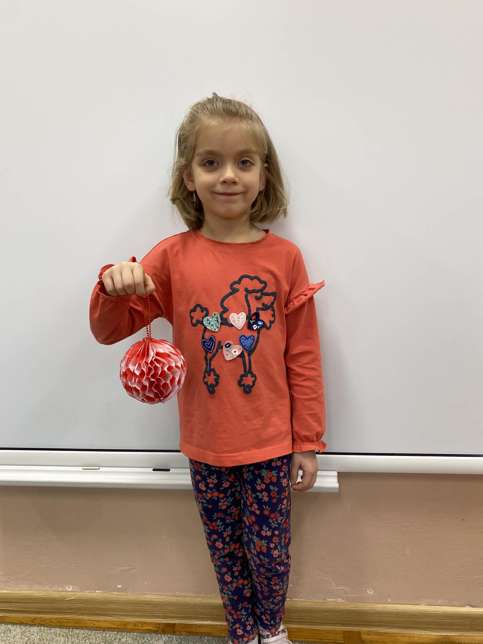W ramach realizacji Międzynarodowego Projektu ,,Piękna Nasza Polska Cała” trzy dziewczynki z naszego przedszkola wzięły udział w VII Ogólnopolskim Rodzinnym Konkursie Plastyczno-Technicznym pt. ,,Ludowe ozdoby choinkowe”. Dziewczynka z grupy Smerfy wykonała piękną bombkę z bibuły w kolorach patriotycznych, zajęła II miejsce. Dyplomy za udział w konkursie otrzymały jeszcze dwie dziewczynki: z grupy Motylki, za wykonanie pięknego wiszącego kogucika oraz z grupy Odkrywcy, za kolorową bombkę wyklejoną kulkami z bibuły. Biorąc udział w konkursie dzieci miały okazję pogłębić swoją wiedzę o ludowe tradycje bożonarodzeniowe, a przy okazji rozwinęły swoją wyobraźnię oraz umiejętności manualne. Gratulacje!!!