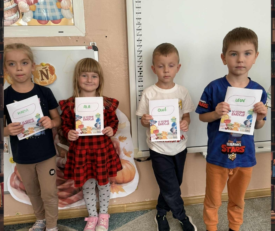Dzieci z grupy Smerfy w ramach realizacji Projektu edukacyjnego “Czuciaki z Krainy emocji” wykonały pierwsze wyzwanie projektowe. Przedszkolaki poznały Śmieszkę z Krainy radości. Każdy założył swój album, gdzie wykonał zadanie. Dzieci zapoznały się z filmem projektowym, powiesiły w sali plakat, wysłuchały opowiadania, wykonały wszystkie zadania dotyczące emocji jaką jest - radość.
