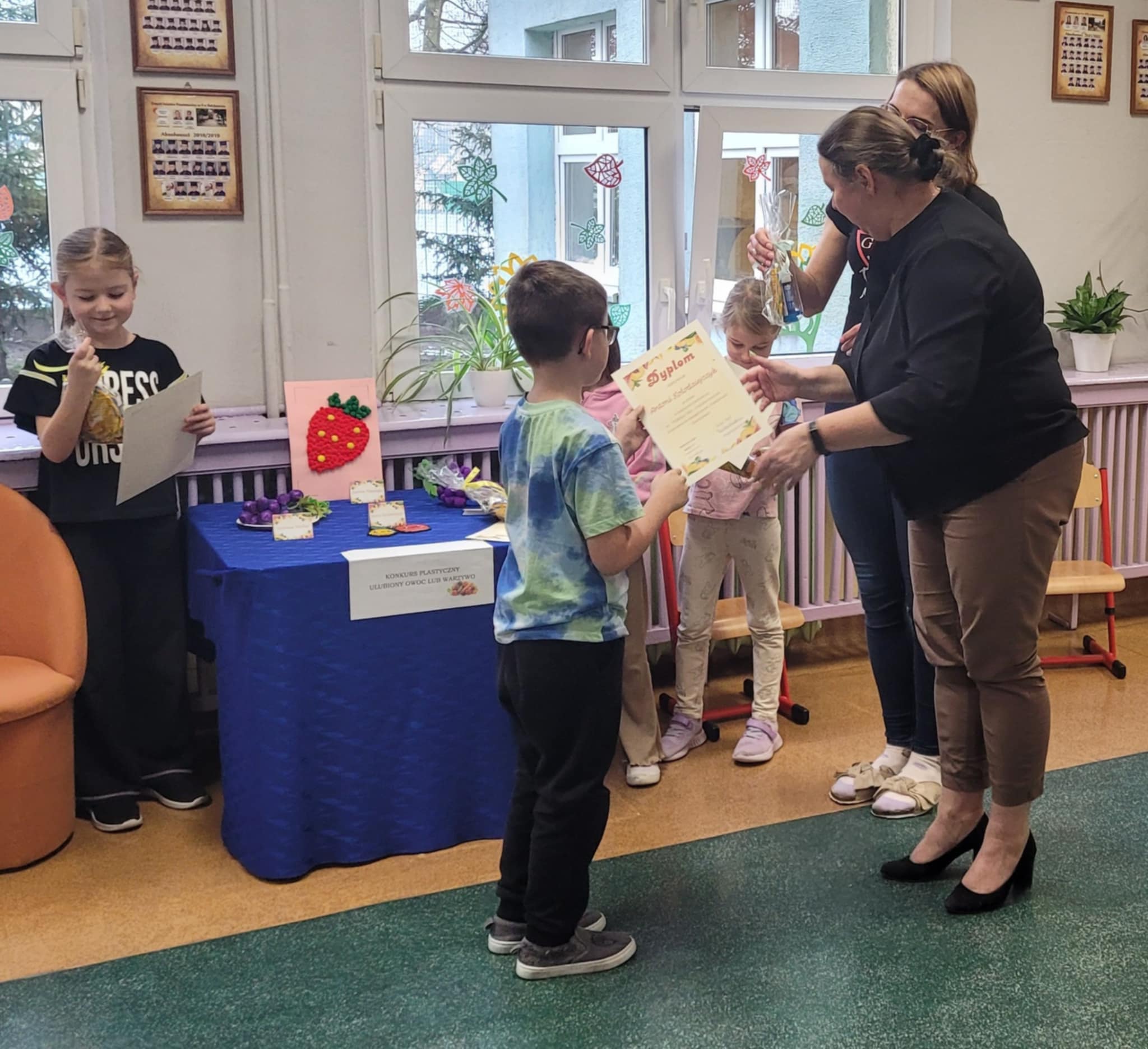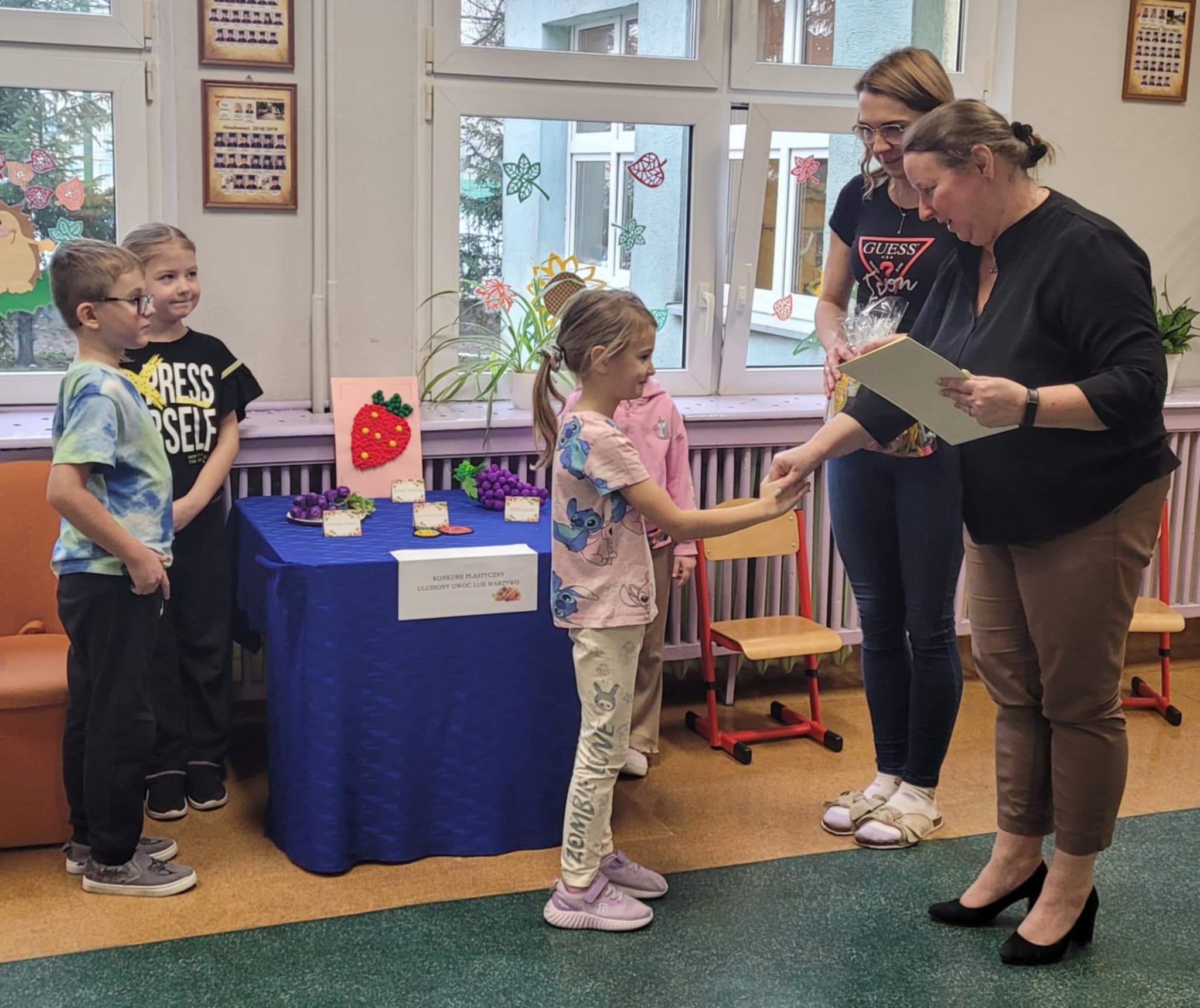 1 grudnia odbyło się podsumowanie konkursu plastycznego „Ulubiony owoc...Ulubione warzywo”. Przedszkolaki z grup 5-6-letnich wykonały piękne prace za które zostały nagrodzone dyplomami i drobnymi upominkami.