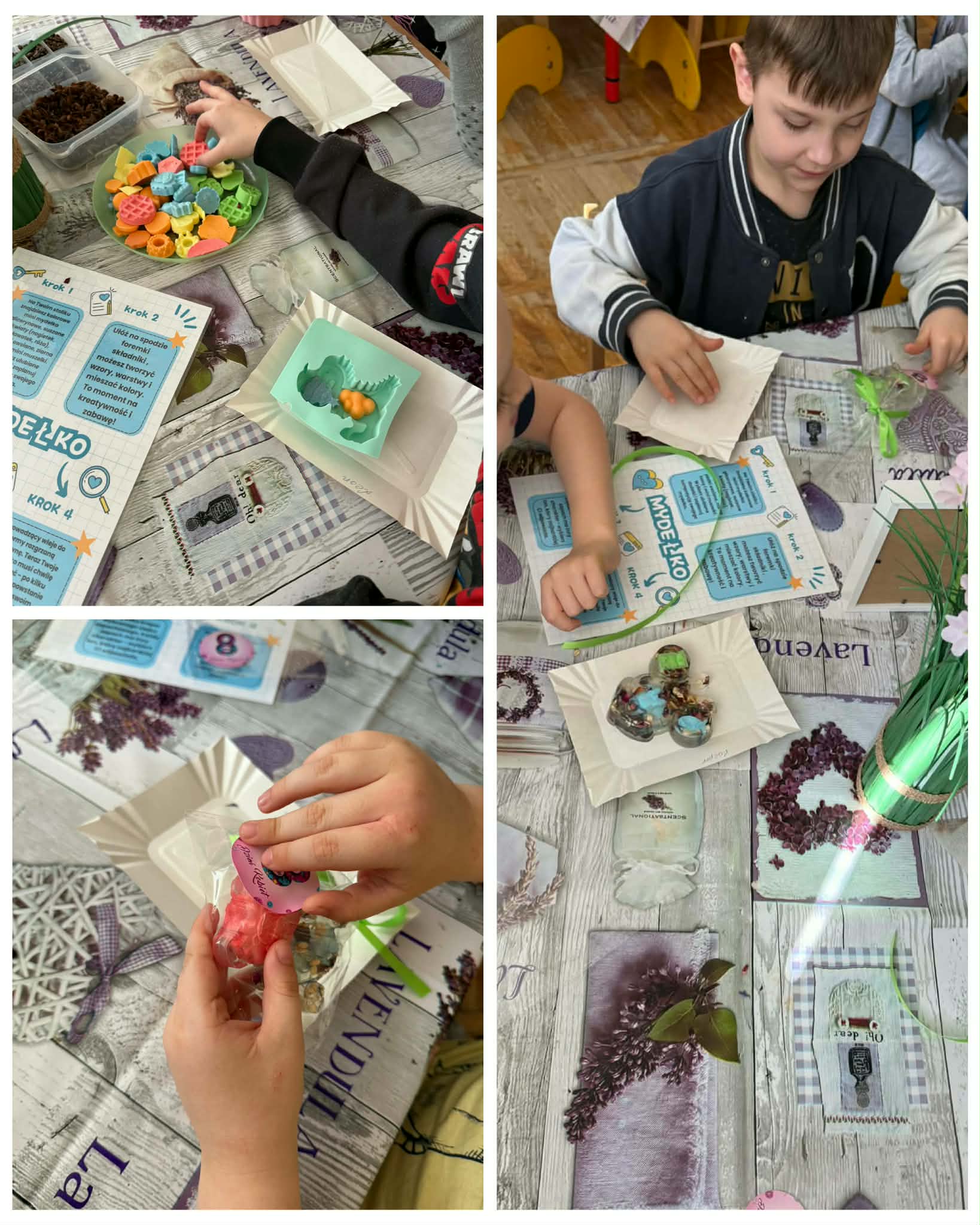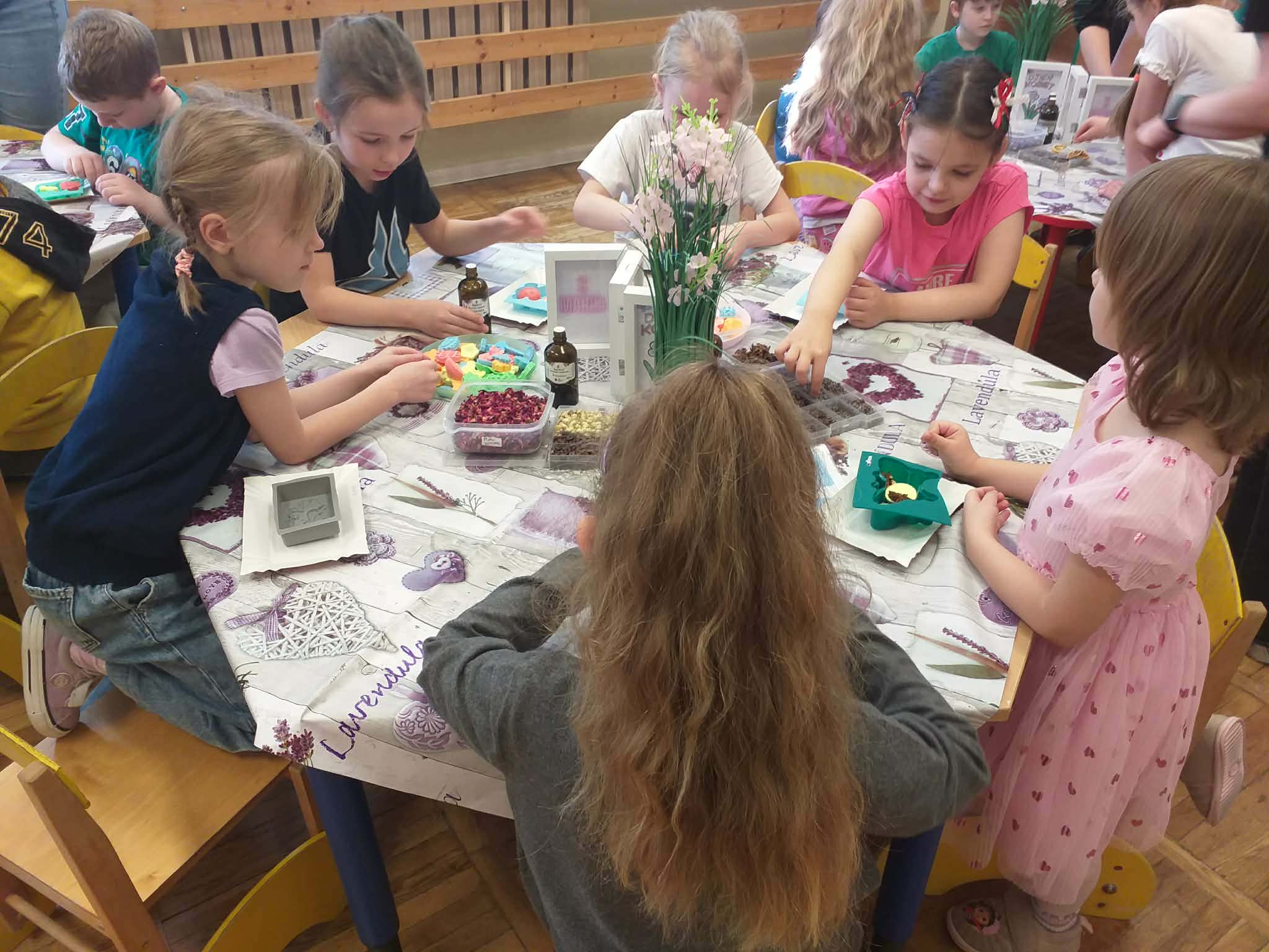 W naszym przedszkolu odbyły się warsztaty mydlarskie, w których udział wzięły grupy Motylki, Odkrywcy i Smerfy. Efektem ich pracy były piękne, pachnące mydełka, które dzieci wykonały z dużym zaangażowaniem.