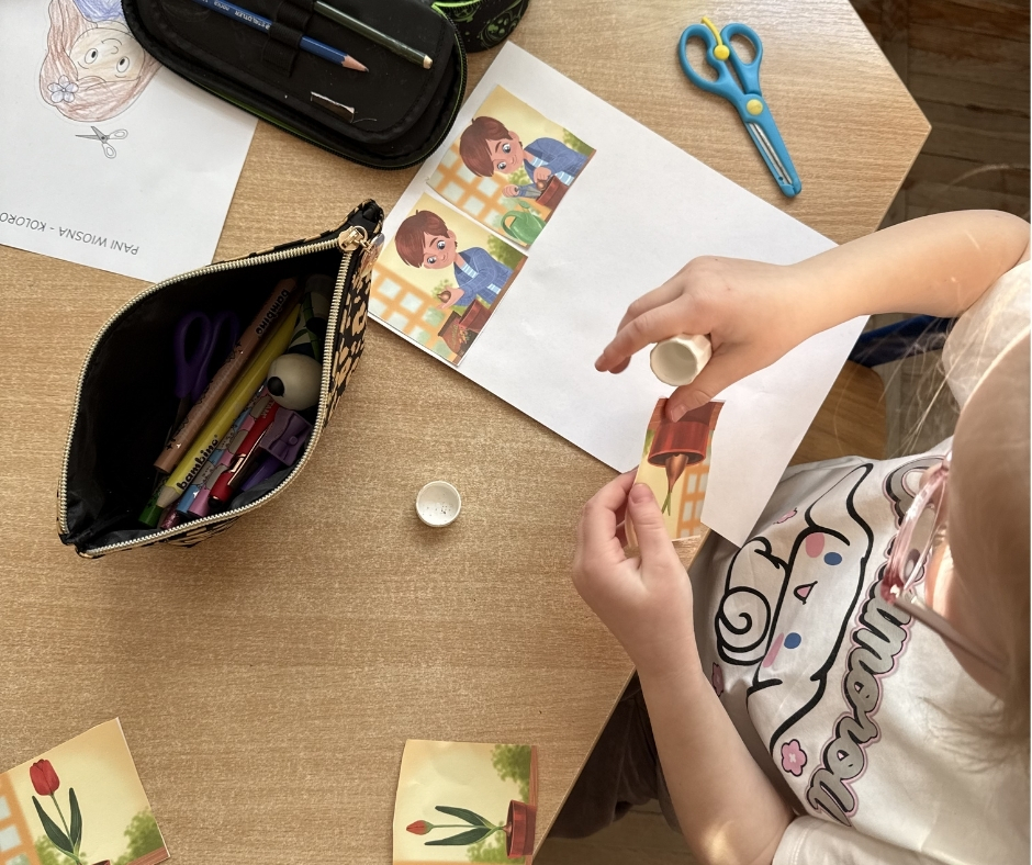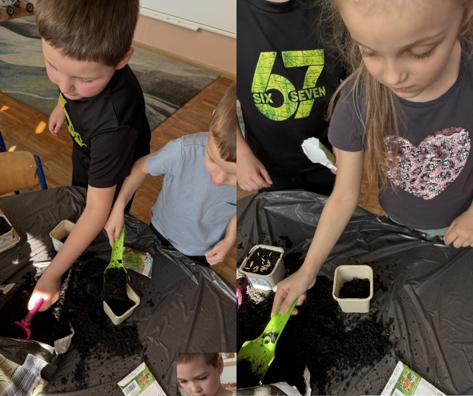 Smerfy oficjalnie przywitały Panią Wiosnę. Dzieci odczytały pozostawiony list i obiecały, że będą poszukiwać oznak wiosny w swoim najbliższym otoczeniu. Przedszkolaki założyły swój ogródek w sali. Znalazła się w nim oczywiście rzeżucha, dymka oraz owies, który każde dziecko zabierze ze sobą na Wielkanoc do domu. Dzieci nie mogły doczekać się ogrodniczych prac. Wykonały także swoje własne “Wiosenki”, które ozdobiły salę oraz układały logicznie historyjkę obrazkową na podstawie sadzenia tulipanów.