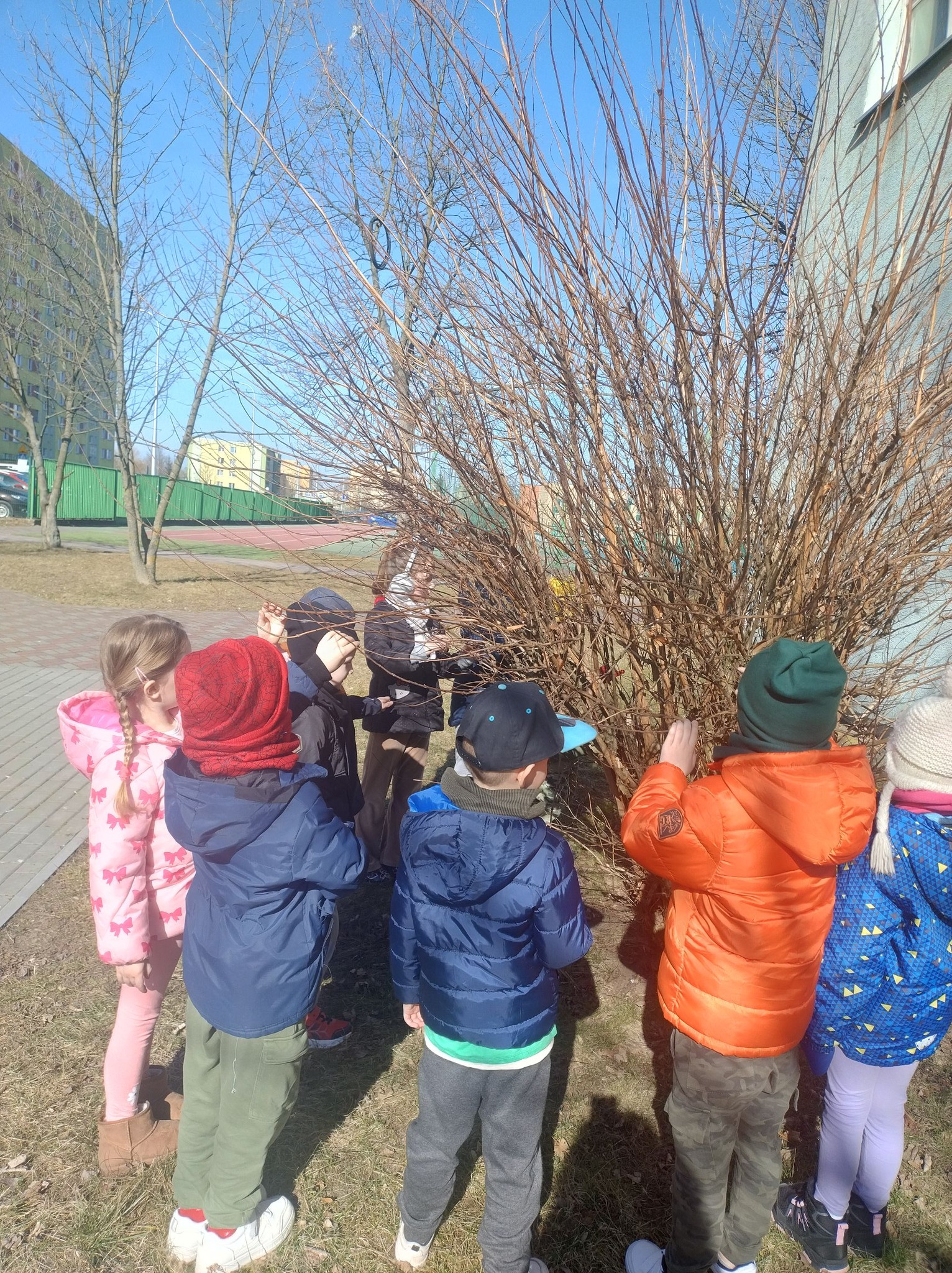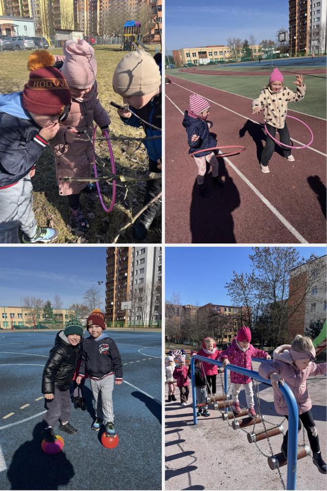 Nasze przedszkolaki korzystają z każdej chwili pierwszych cieplejszych dni! Dzieci z radością ruszyły na świeże powietrze. Były spacery, zabawy ruchowe, obserwowanie przyrody i małe poszukiwania pierwszych oznak wiosny. Każda grupa znalazła coś wyjątkowego — pączki na gałązkach, pierwsze źdźbła trawy, a nawet bardzo zapracowane owady. Taka pogoda to idealny czas na odkrywanie świata wszystkimi zmysłami i wspólne, radosne aktywności. Niech wiosna zostanie już nami!