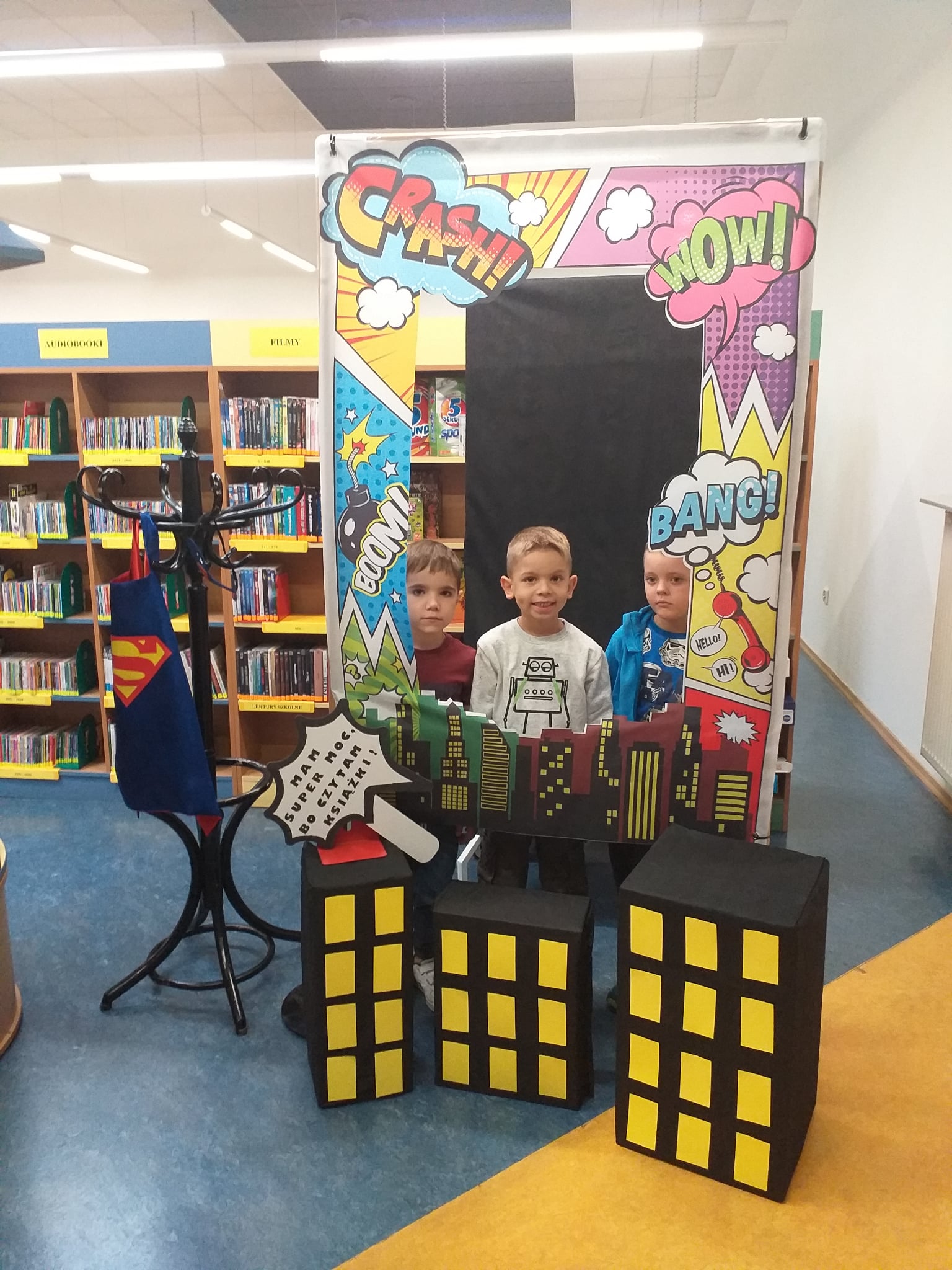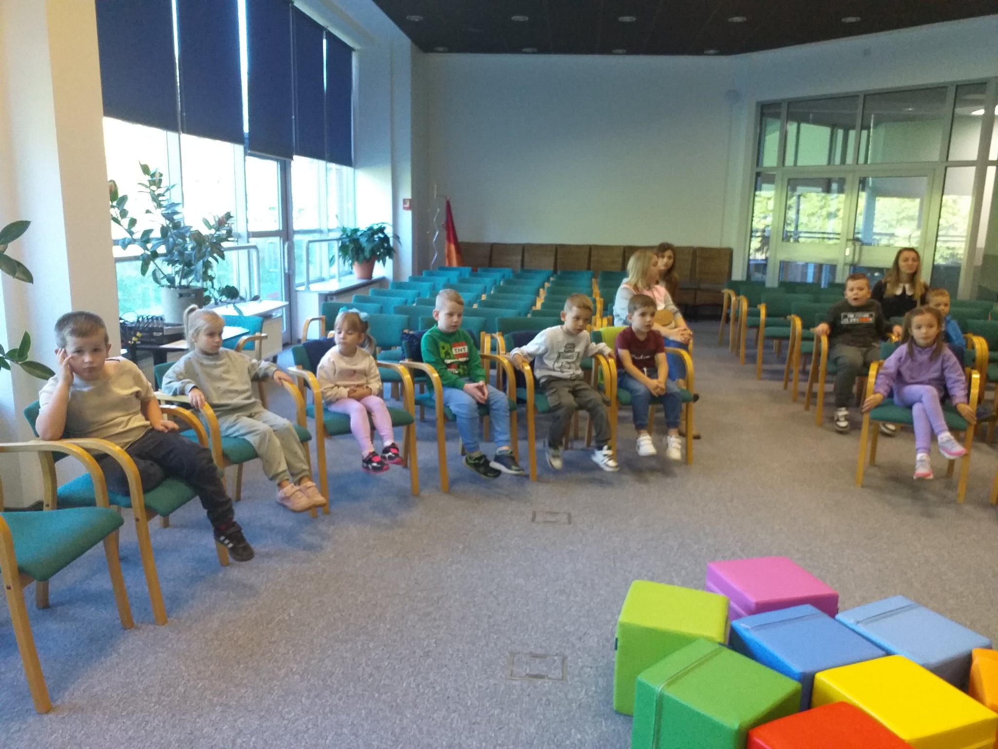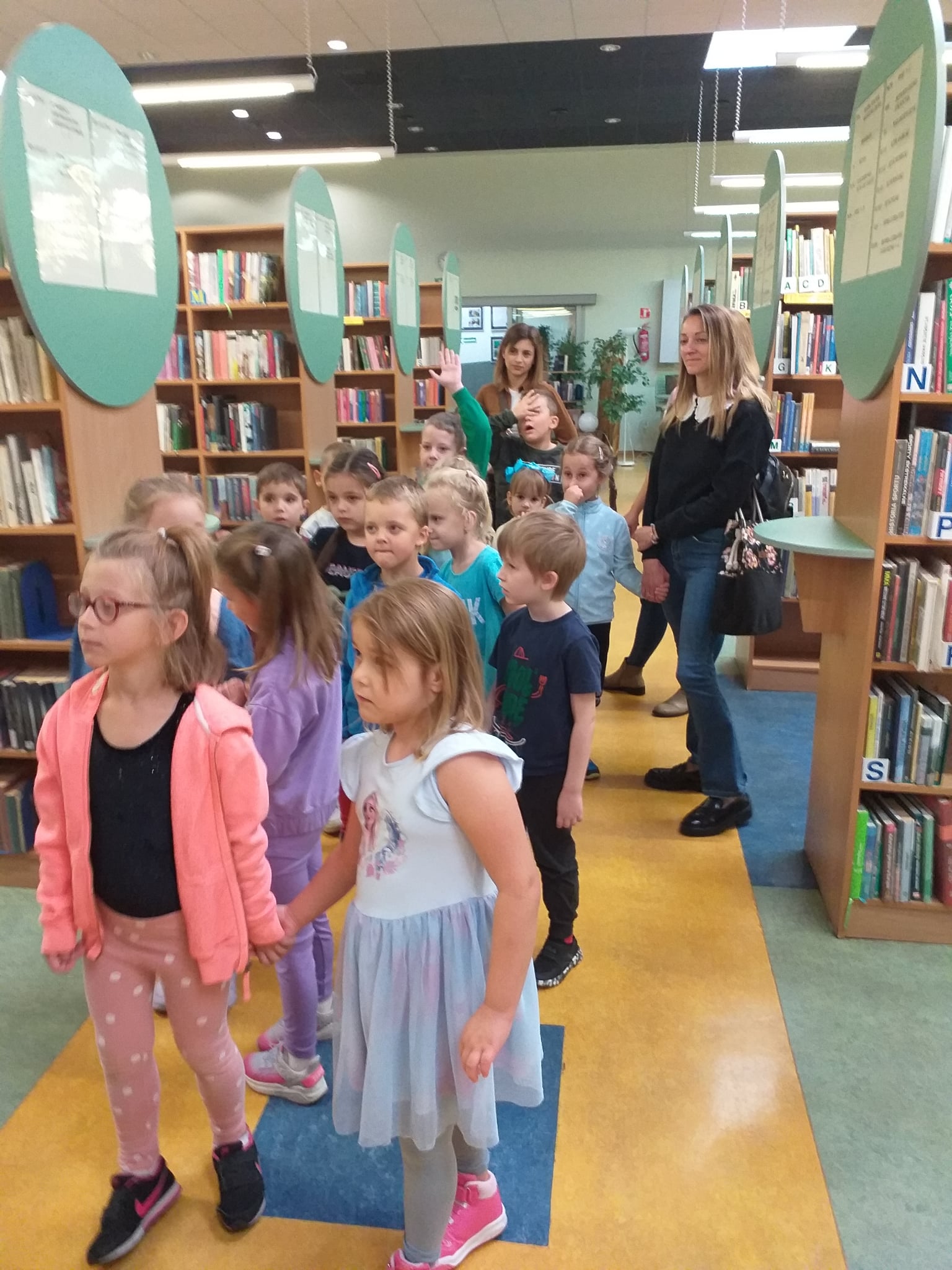 W dniu 02.10.2025 r. dzieci z grupy Odkrywcy wybrały się do Miejskiej i Powiatowej Biblioteki Publicznej w Bełchatowie. Celem wizyty było poszerzenie wiedzy na temat biblioteki i pracy bibliotekarza. Pani bibliotekarka oprowadzała dzieci po różnych pomieszczeniach biblioteki i opowiadała o tym co można w nich robić. Na początku zaprowadziła je do pokoju słynnego Harry'ego Pottera. Następnie zwiedzały wypożyczalnię dla dorosłych, gdzie przemieszczały się pomiędzy regałami i zdumiewały na widok tak wielu książek. Potem pani bibliotekarka zaprosiła dzieci do miejsca z komputerami i prezentowała jak znaleźć określone książki w katalogu za pomocą komputera. Następnie dzieci zaprowadzone zostały do wypożyczalni dla dzieci. Tam pani bibliotekarka zachęcała je do wypożyczenia bestsellerowych tytułów. Chłopcy mogli zrobić sobie pamiątkowe zdjęcie z dekoracją z okazji Dnia Chłopaka. Na zakończenie dzieci zaproszone zostały do czytelni, gdzie wysłuchały jednej z bajek czytanej przez panią bibliotekarkę. Po poznaniu zasad funkcjonowania biblioteki, dzieci zadowolone i z ogromną wiedzą powróciły do przedszkola.