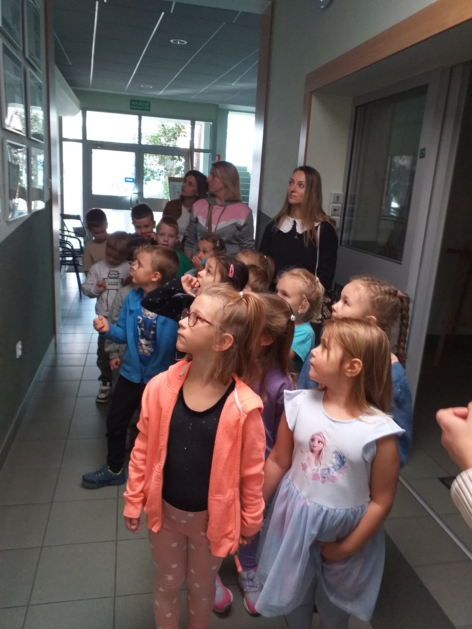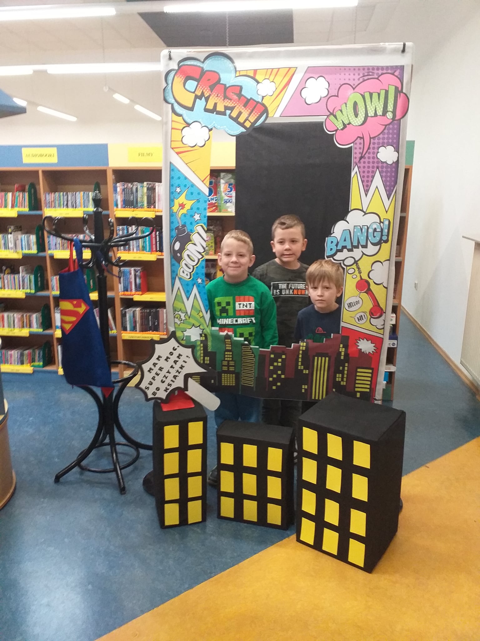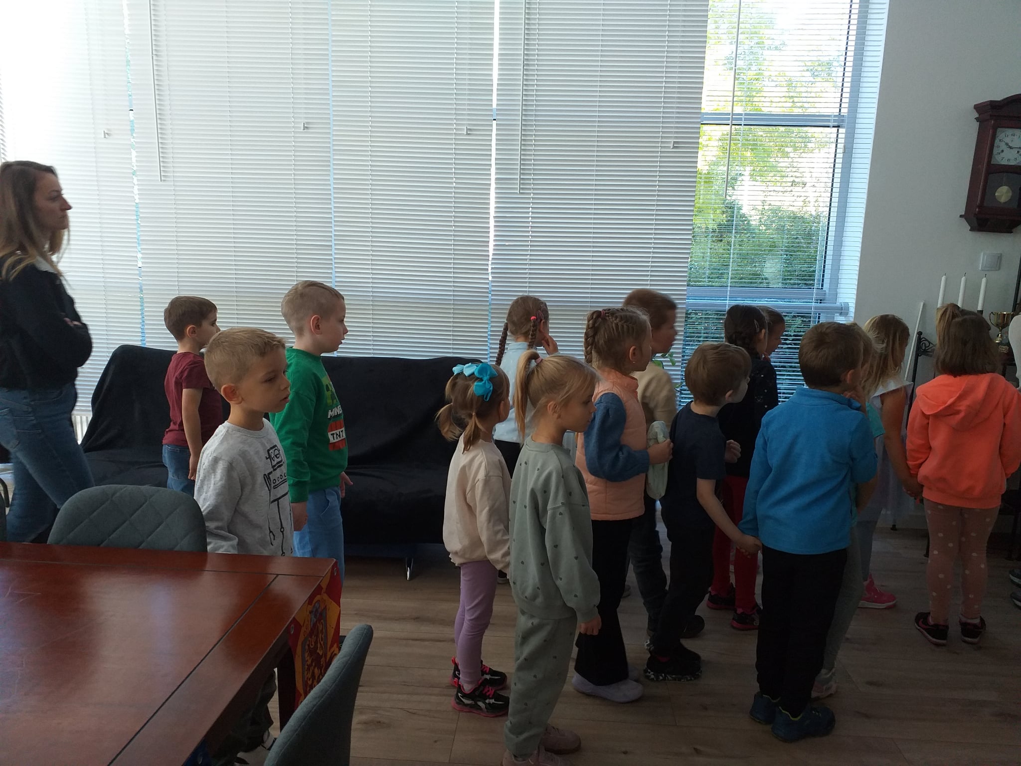 W dniu 02.10.2025 r. dzieci z grupy Odkrywcy wybrały się do Miejskiej i Powiatowej Biblioteki Publicznej w Bełchatowie. Celem wizyty było poszerzenie wiedzy na temat biblioteki i pracy bibliotekarza. Pani bibliotekarka oprowadzała dzieci po różnych pomieszczeniach biblioteki i opowiadała o tym co można w nich robić. Na początku zaprowadziła je do pokoju słynnego Harry'ego Pottera. Następnie zwiedzały wypożyczalnię dla dorosłych, gdzie przemieszczały się pomiędzy regałami i zdumiewały na widok tak wielu książek. Potem pani bibliotekarka zaprosiła dzieci do miejsca z komputerami i prezentowała jak znaleźć określone książki w katalogu za pomocą komputera. Następnie dzieci zaprowadzone zostały do wypożyczalni dla dzieci. Tam pani bibliotekarka zachęcała je do wypożyczenia bestsellerowych tytułów. Chłopcy mogli zrobić sobie pamiątkowe zdjęcie z dekoracją z okazji Dnia Chłopaka. Na zakończenie dzieci zaproszone zostały do czytelni, gdzie wysłuchały jednej z bajek czytanej przez panią bibliotekarkę. Po poznaniu zasad funkcjonowania biblioteki, dzieci zadowolone i z ogromną wiedzą powróciły do przedszkola.
