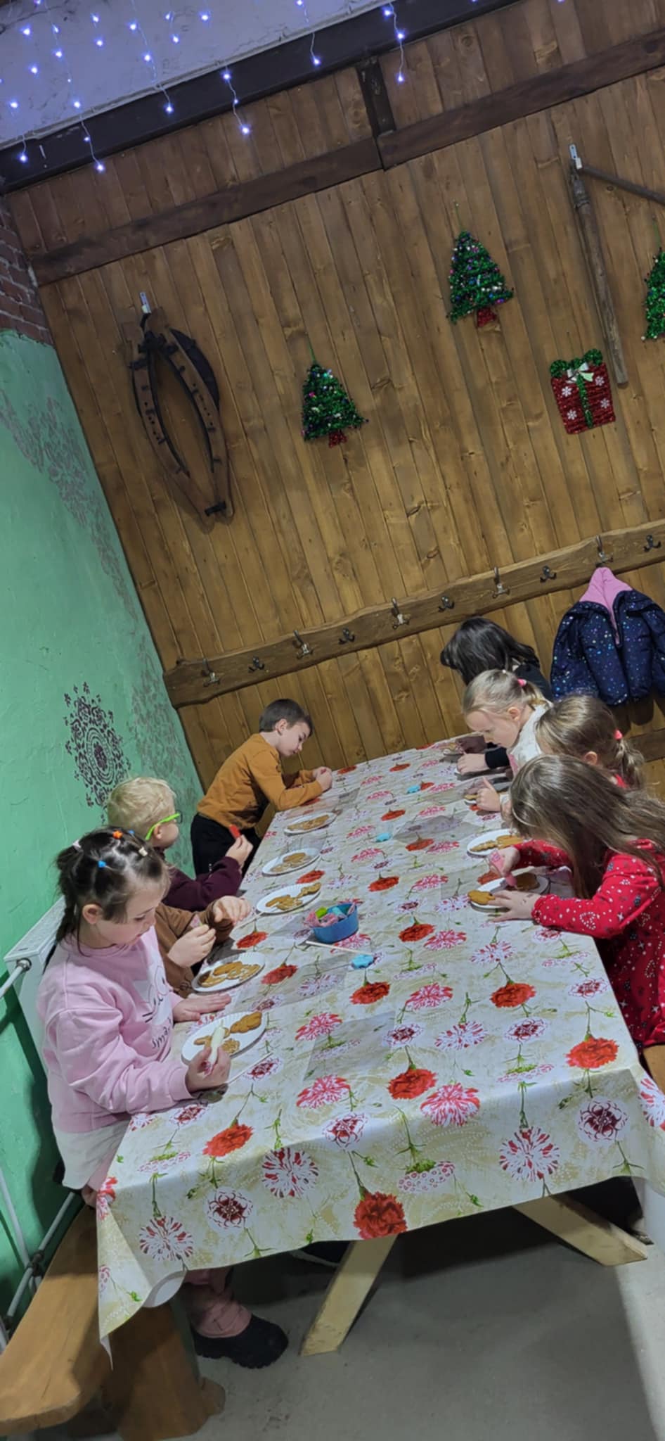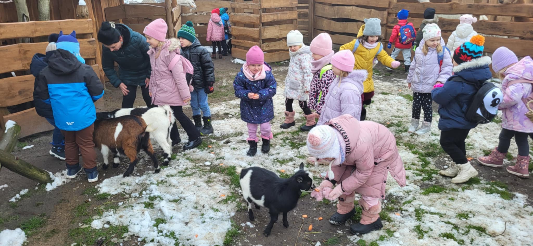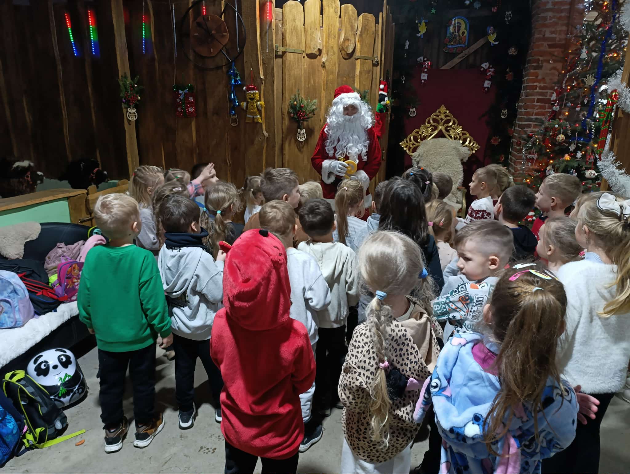 2 grudnia dzieci z grupy Żabki i Misie odwiedziły Agroturystykę ,,Markowa kraina" w Niedyszynie. Przedszkolaki miały okazje zobaczyć i nakarmić zwierzęta, tj. alpaki, kozy, kaczki. Po spacerze na świeżym powietrzu dzieci dekorowały pierniki, ozdabiały bombki, tworzyły bałwanki, bawiły się ze zwierzątkami, robiły pamiątkowe zdjęcia z białym misiem. Na koniec pojawił się gość specjalny – Święty Mikołaj, który wręczył dzieciom upominki. Był to dzień pełen radości i niespodzianek.