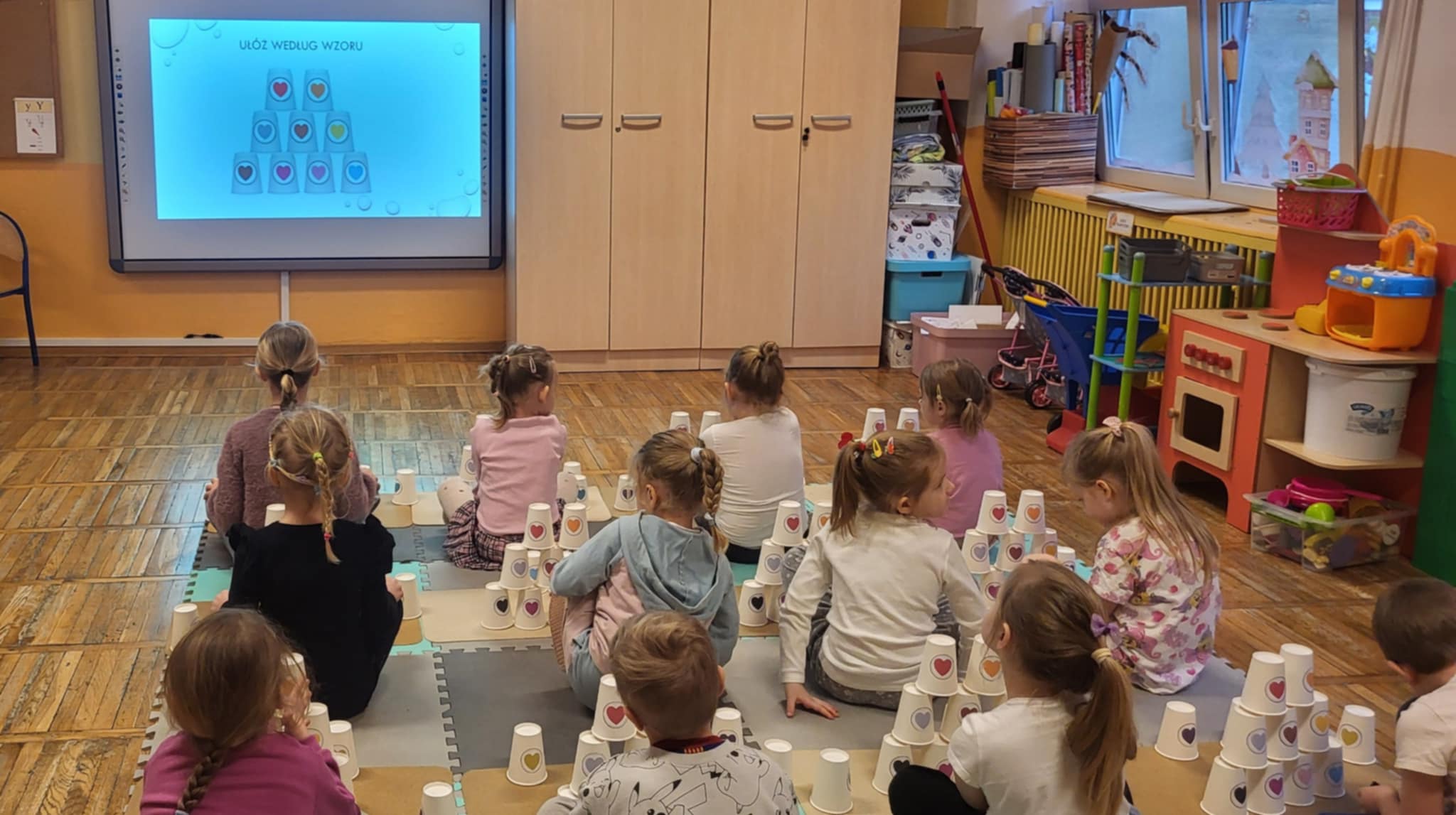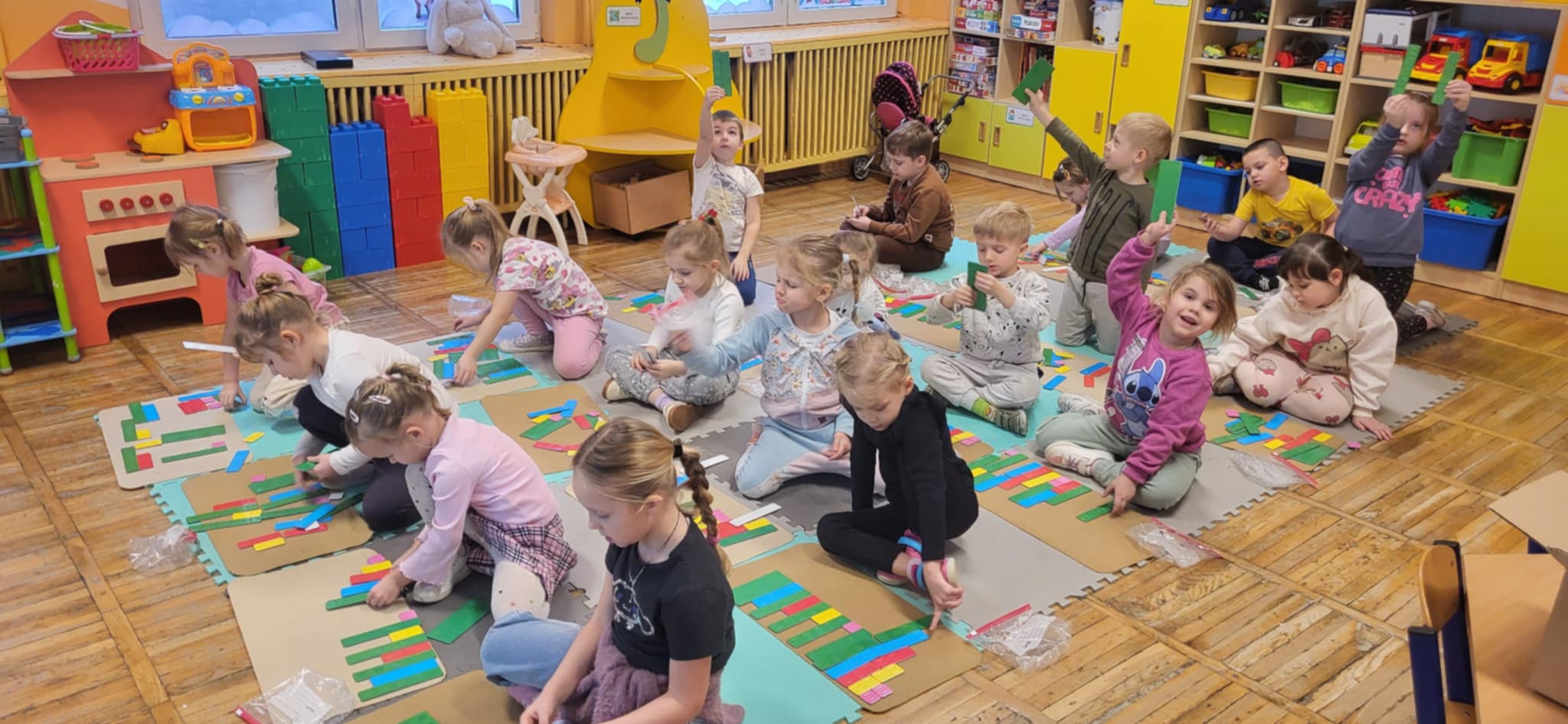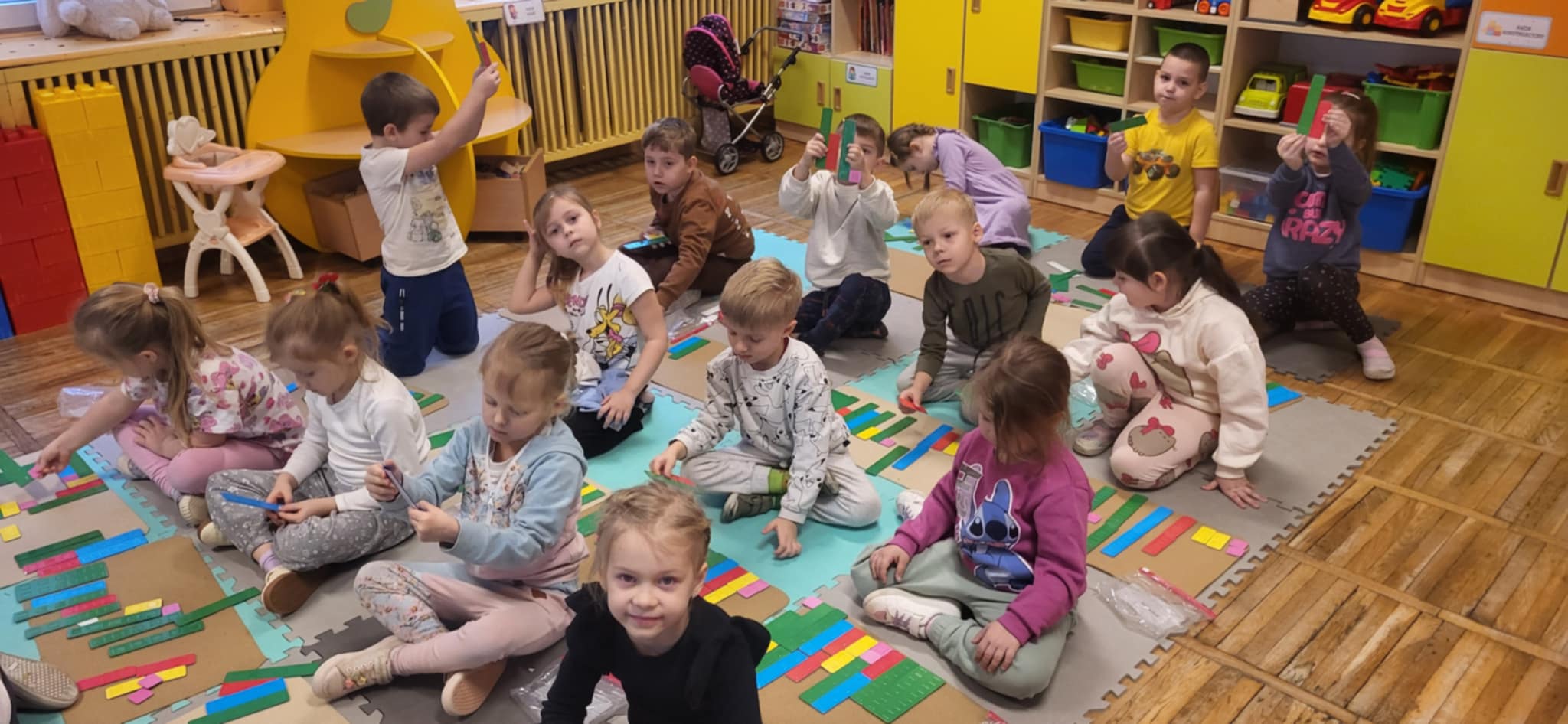 Podczas zajęć dzieci z grupy Żabki rozwijały swoje umiejętności matematyczne poprzez zabawę z kubeczkami i klockami Nemi. Przedszkolaki uczyły się liczyć, odtwarzały kody z tablicy multimedialnej i kartoników ćwicząc koncentrację uwagi, spostrzegawczość, logiczne myślenie. Zabawa przez działanie sprawiła wiele radości i zachęciła do samodzielnych odkryć.