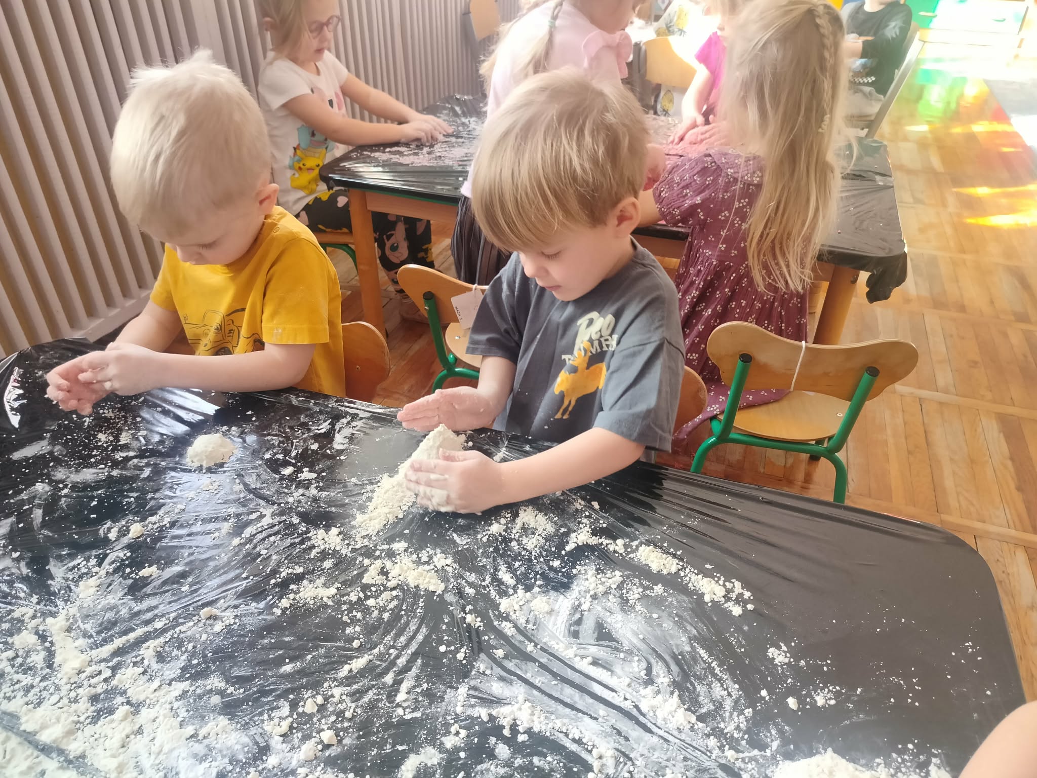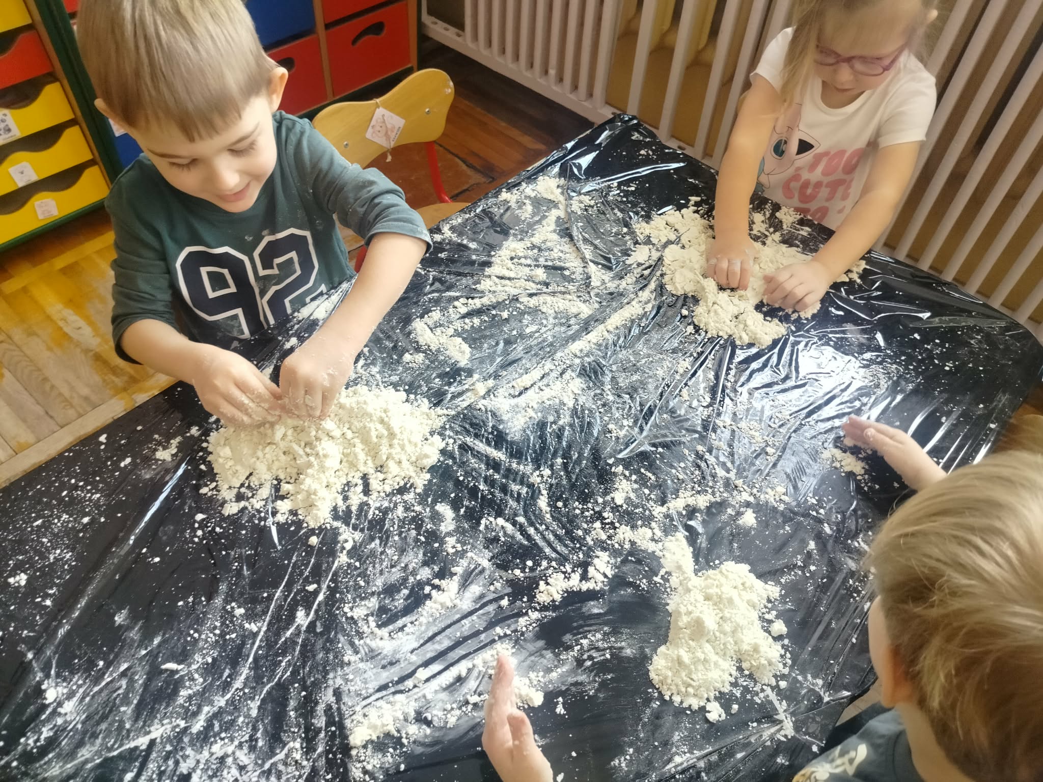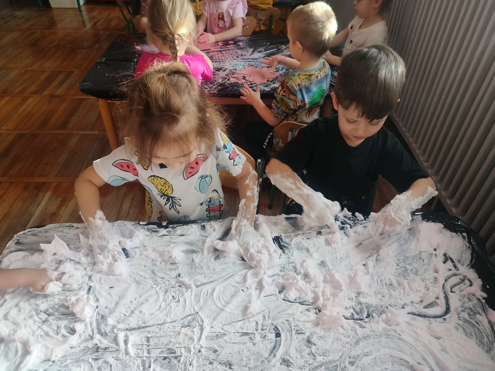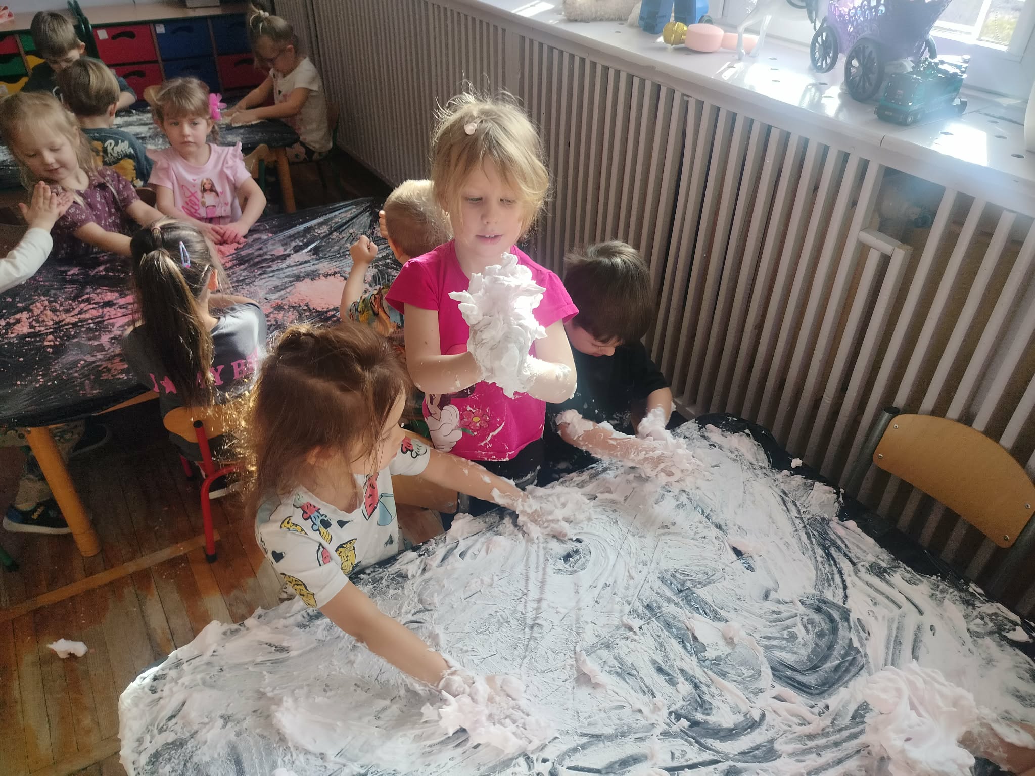 W grupie Słoneczka odbyły się zajęcia sensoryczne angażujące zmysły i stymulujące rozwój układu nerwowego. Przedszkolaki miały do dyspozycji masy plastyczne o różnych kolorach, zapachach i fakturach oraz zwykłą piankę do golenia. Oprócz świetnej zabawy, była to okazja do rozwoju motoryki małej, kreatywności i wielozmysłowego doświadczania.