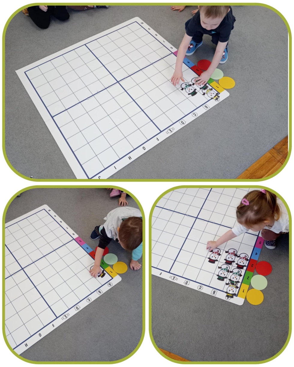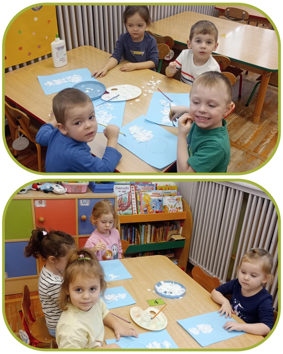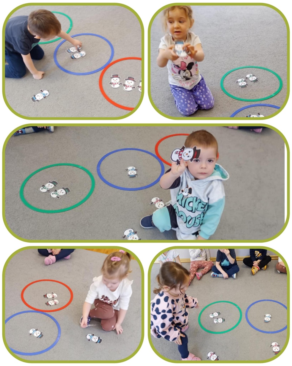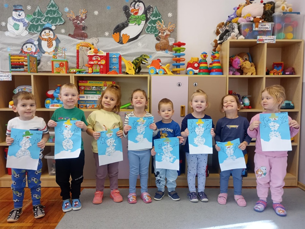 18 stycznia przypada Dzień Bałwanka, który był bohaterem zabaw matematycznych w gr. Biedronki. W trakcie zajęć przedszkolaki wysłuchały opowiadania o Kasi i bałwanku oraz ułożyły do niego historyjkę obrazkową. Dzieci porównywały wielkość kół, które segregowały, a następnie ułożyły z nich postać bałwana. Ponadto biedronki segregowały bałwanki ze względu na kolor kapelusza i porównywały ich ilość. Biedroneczki bawiły się również w kodowanie, wyznaczając rabacikowi Zosi drogę bałwanka do jego cienia. Przedszkolaki określały również położenie papierowej kuli względem ich ciała oraz rzucały nimi do kosza. Na zakończenie zajęć dzieci wyklejały kontur bałwanka białą bibułą.