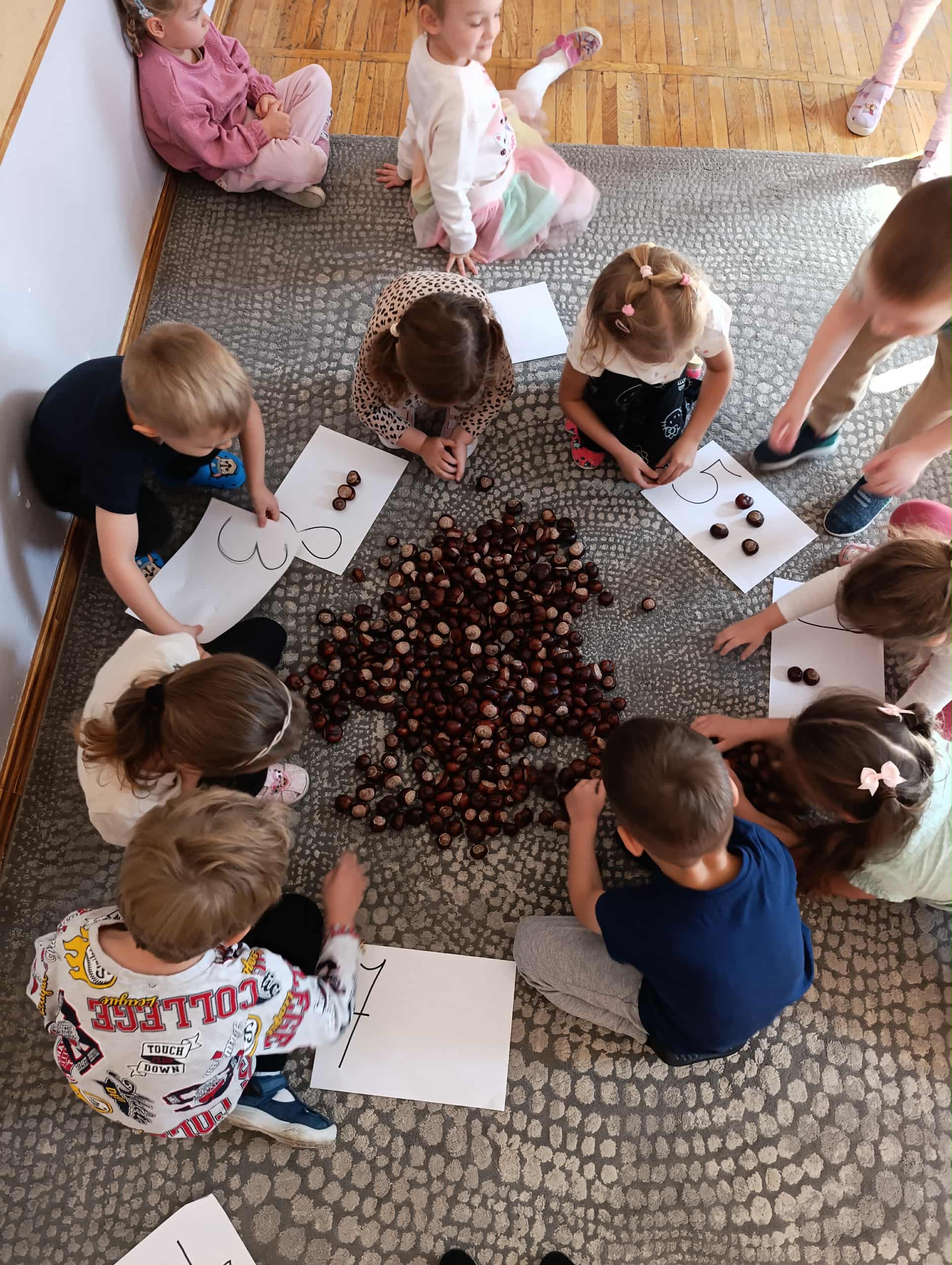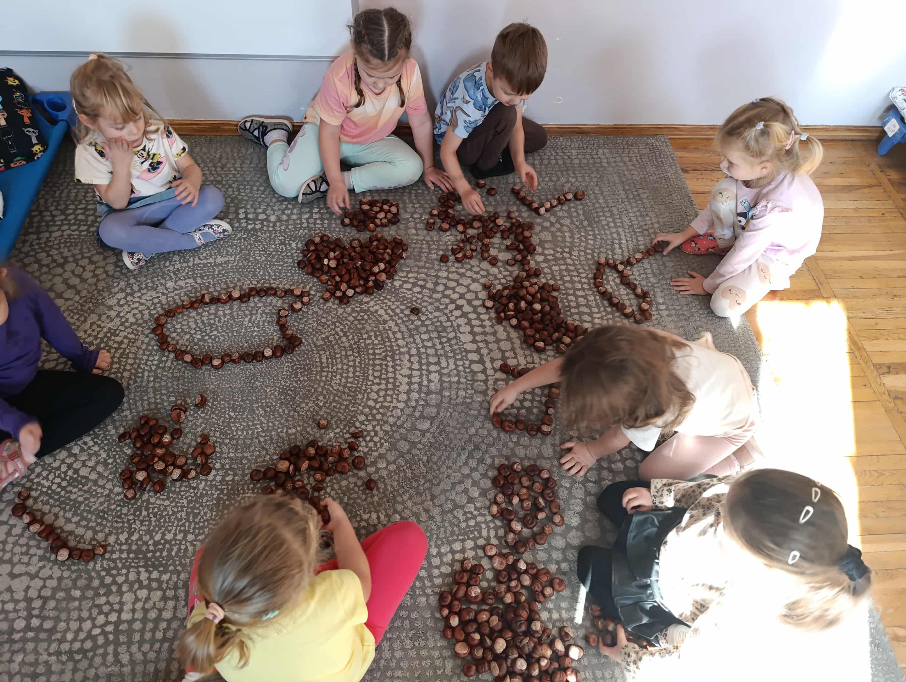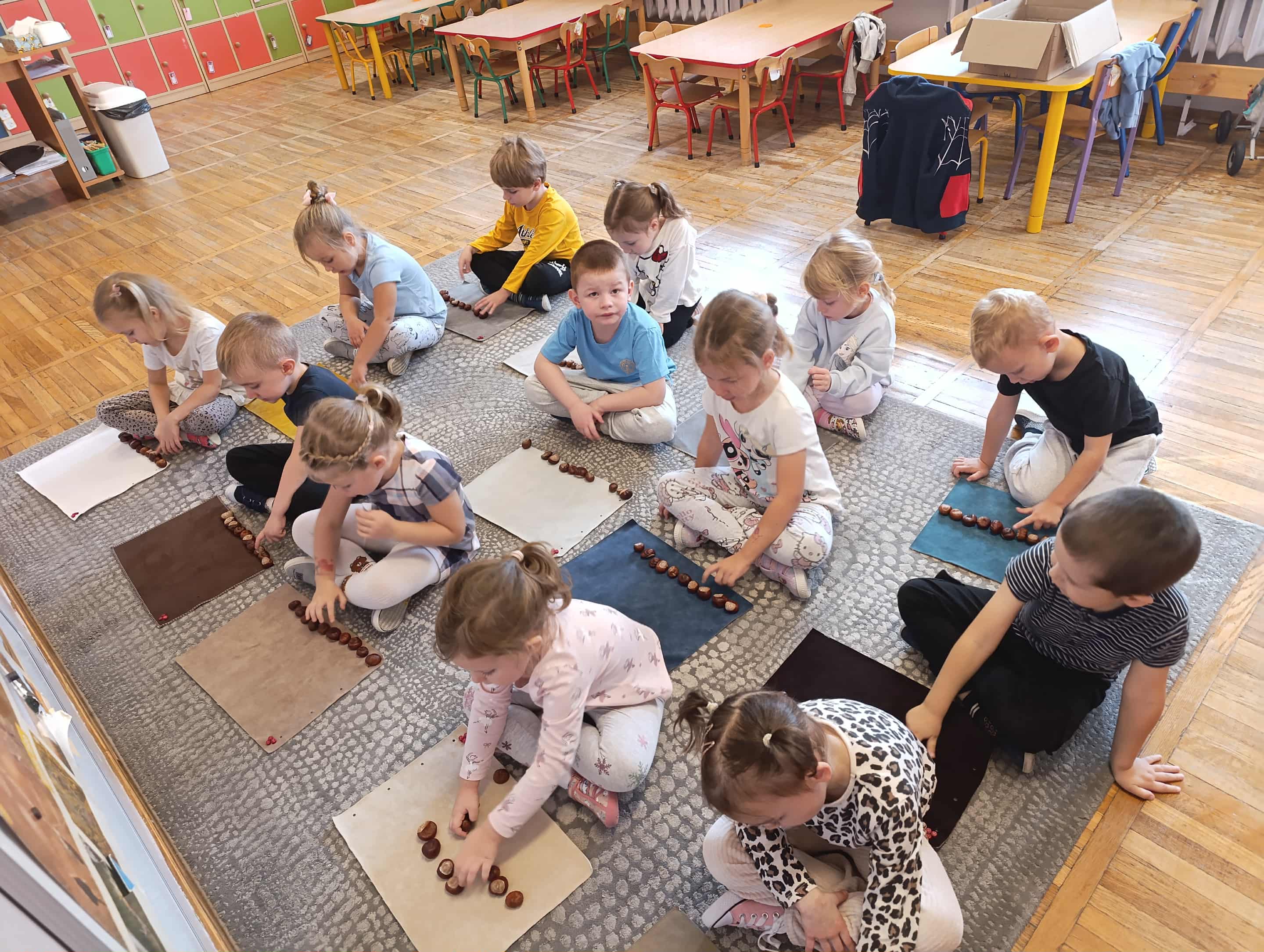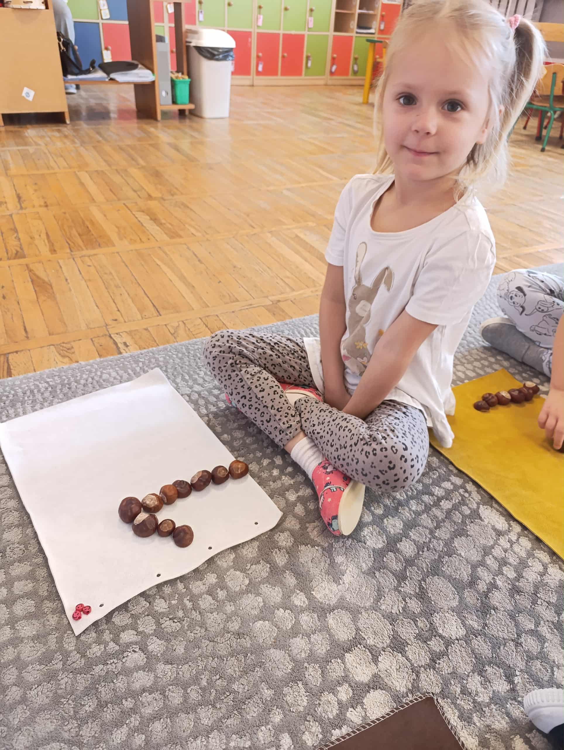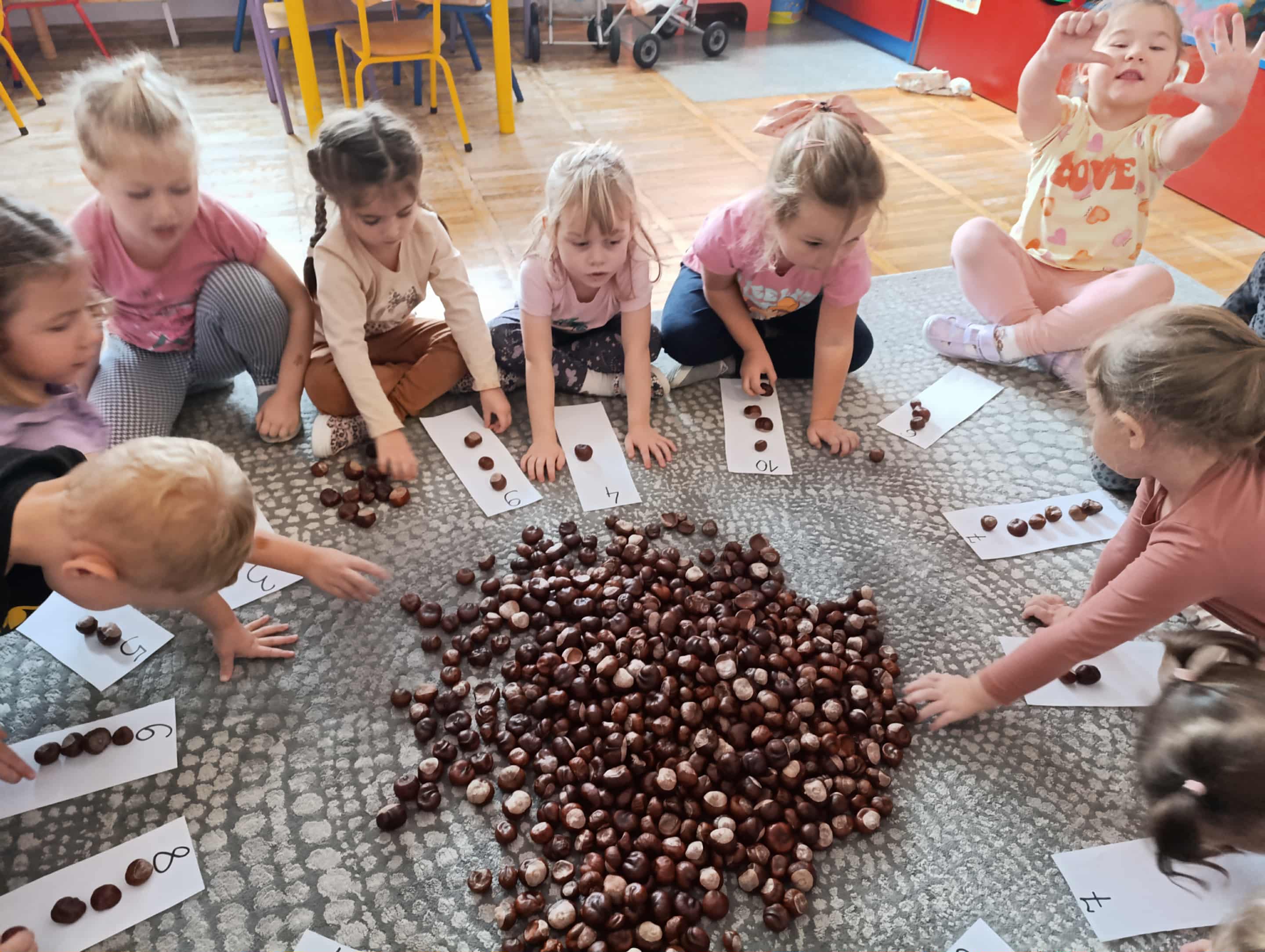 W grupie Stokrotki dzieci szukając darów jesieni nazbierały do przedszkola całe mnóstwo kasztanów, którymi możemy się teraz bawić. Zapraszamy na krótką fotorelację z zabaw z kasztanami w roli głównej, które są doskonałą pomocą do realizacji innowacji matematycznej "Dziecięca matematyka". Zabawy te dostarczyły dzieciom wiele radości, rozwijały ich kreatywność i sensorykę.