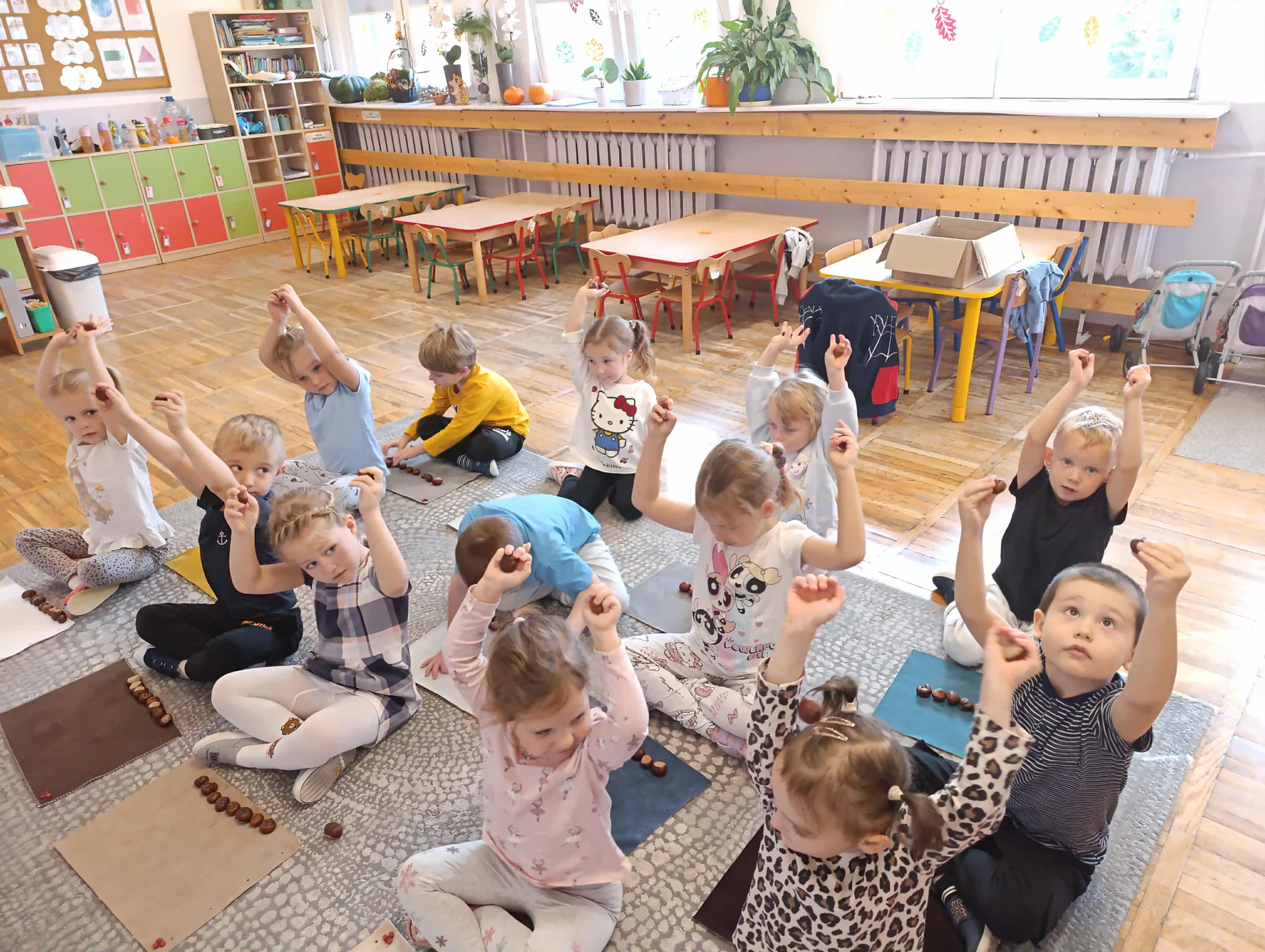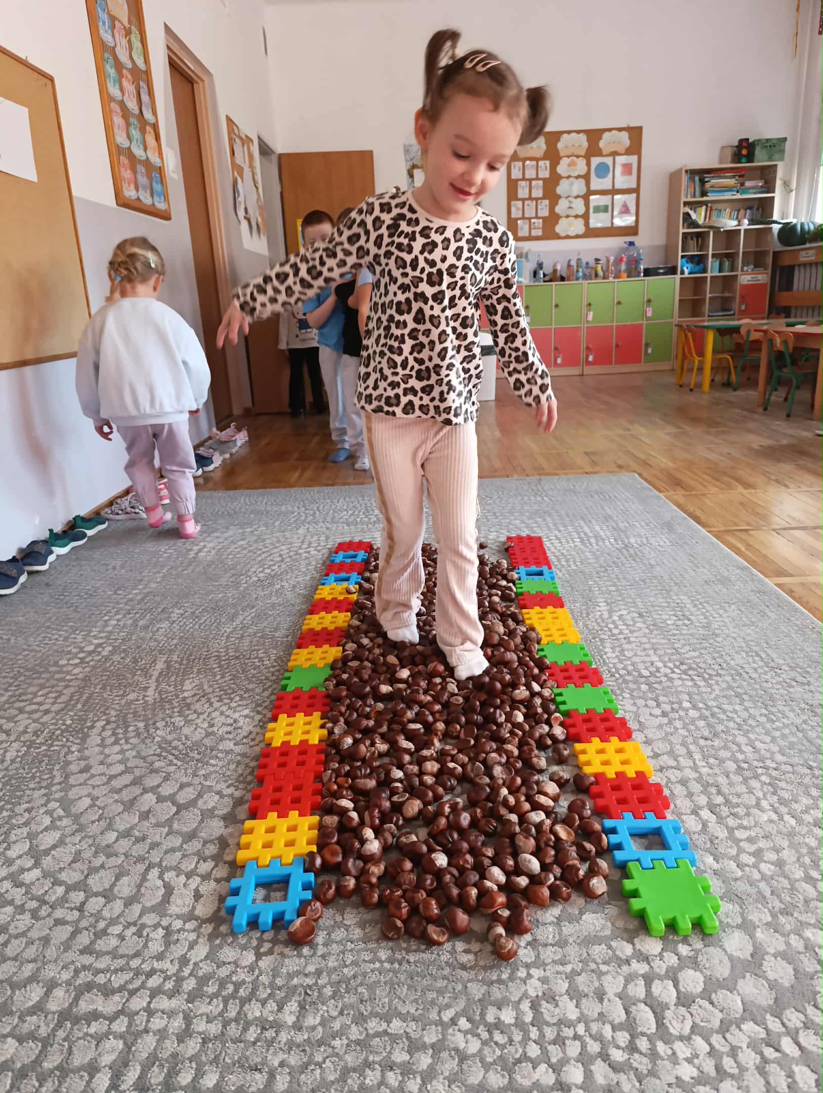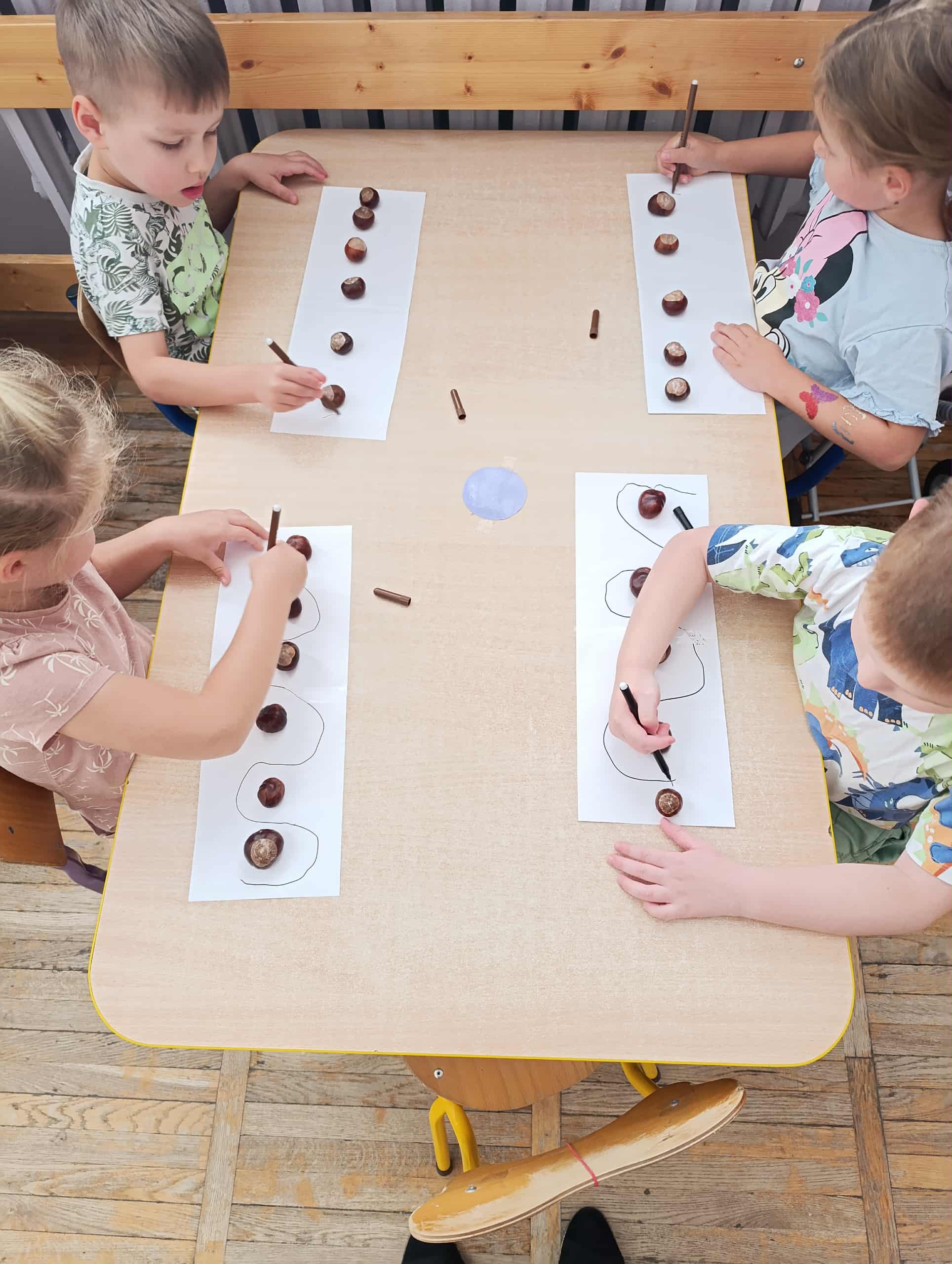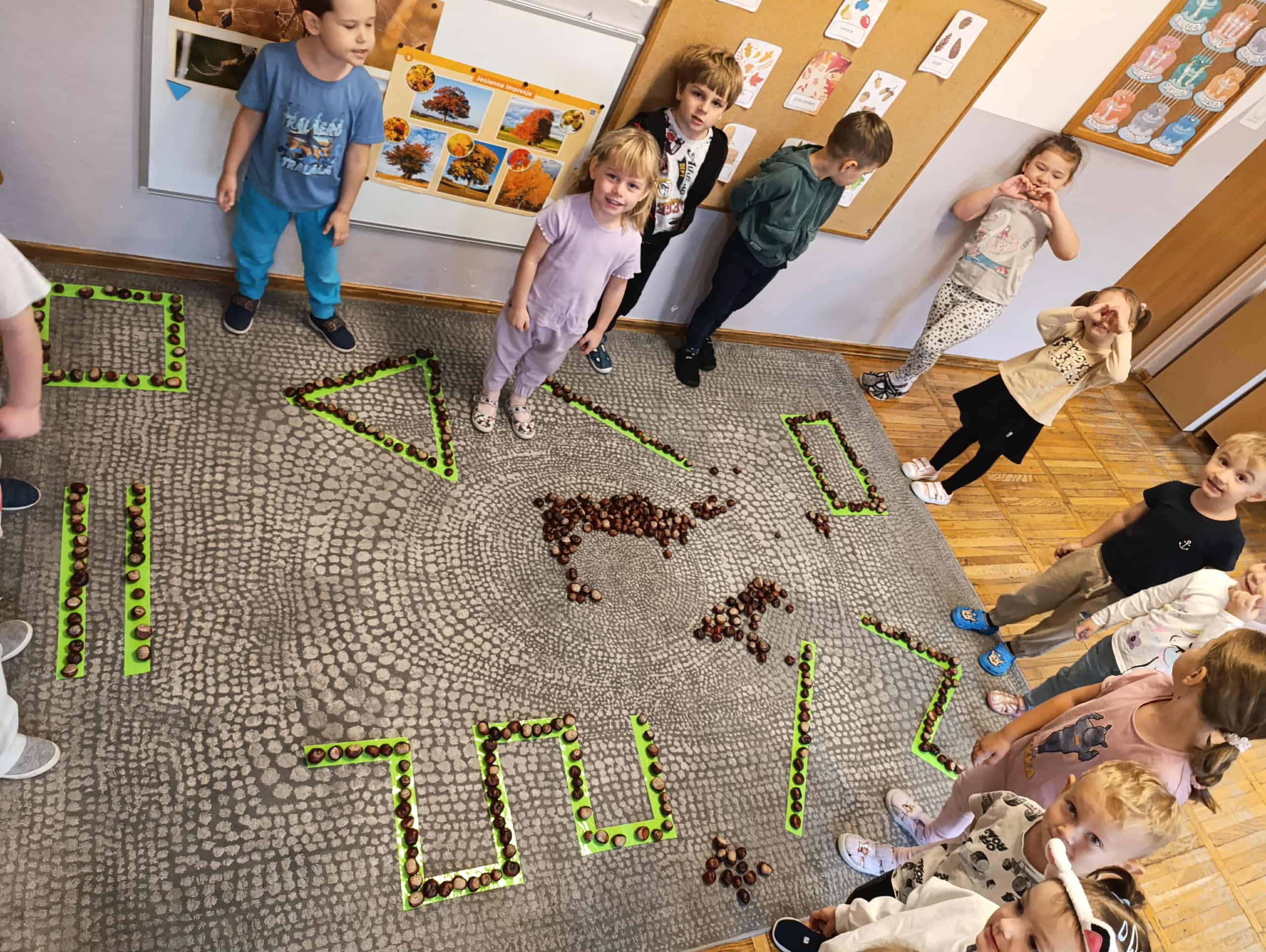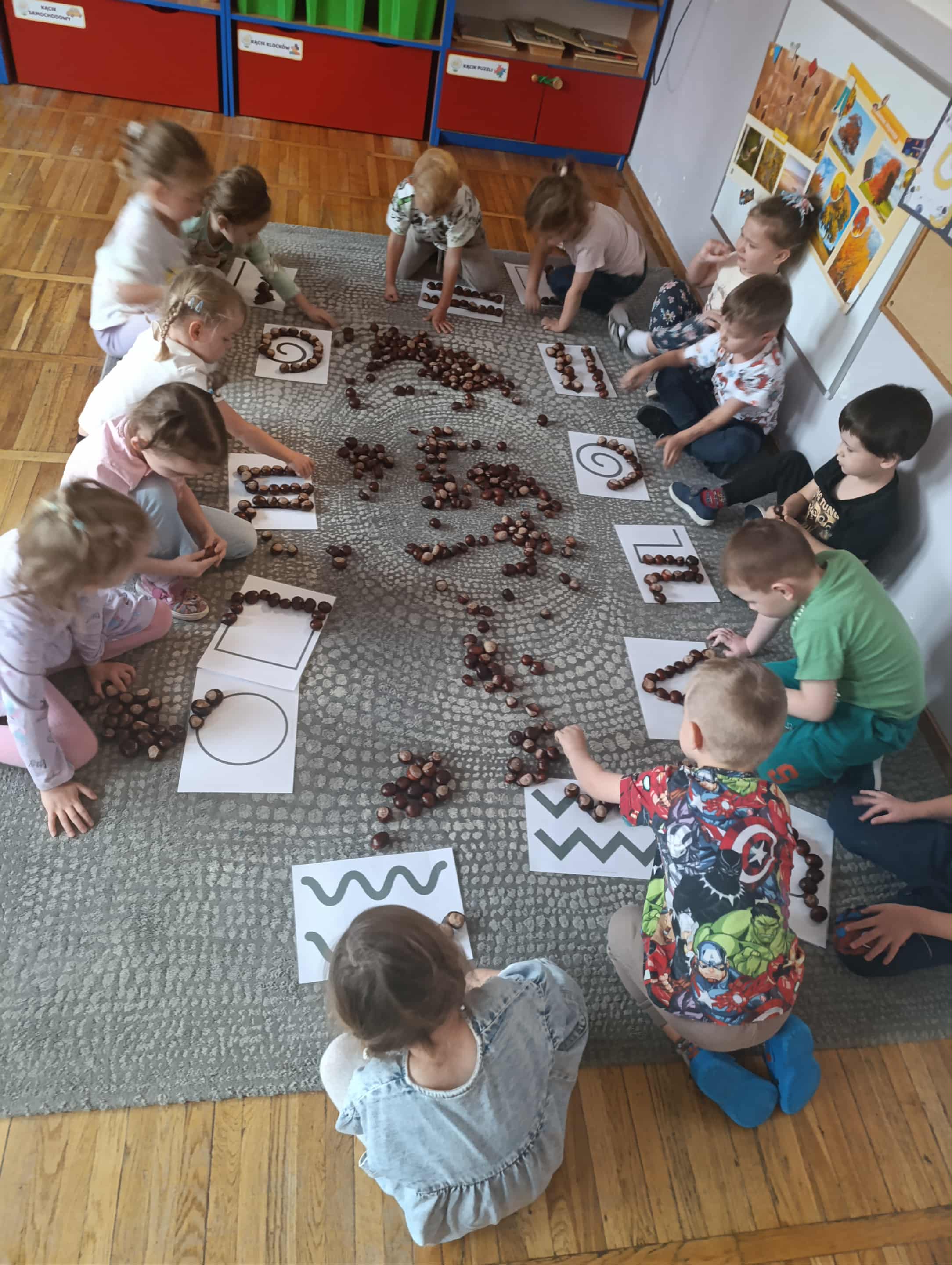 W grupie Stokrotki dzieci szukając darów jesieni nazbierały do przedszkola całe mnóstwo kasztanów, którymi możemy się teraz bawić. Zapraszamy na krótką fotorelację z zabaw z kasztanami w roli głównej, które są doskonałą pomocą do realizacji innowacji matematycznej "Dziecięca matematyka". Zabawy te dostarczyły dzieciom wiele radości, rozwijały ich kreatywność i sensorykę.